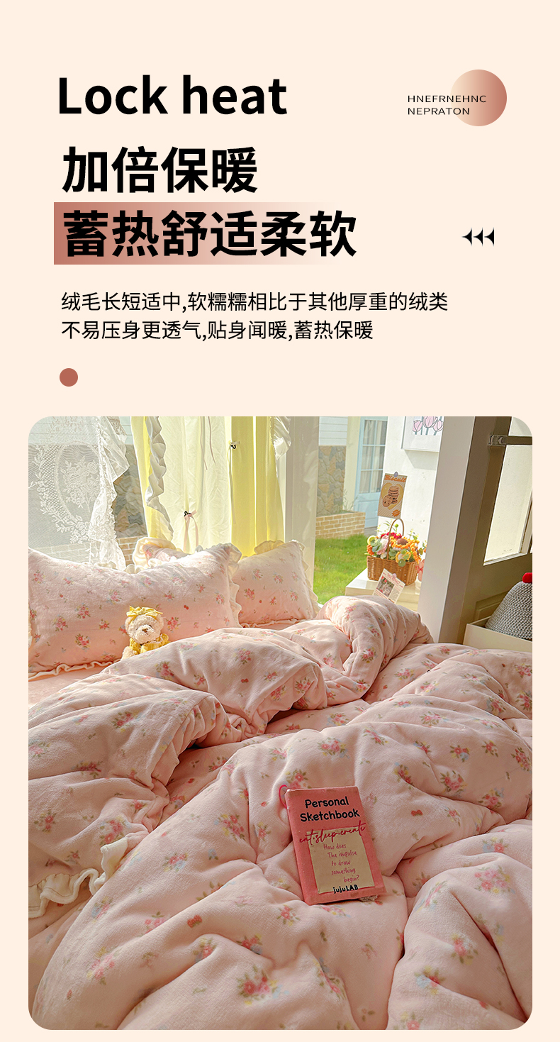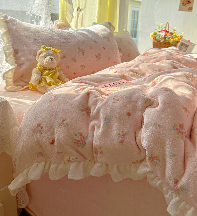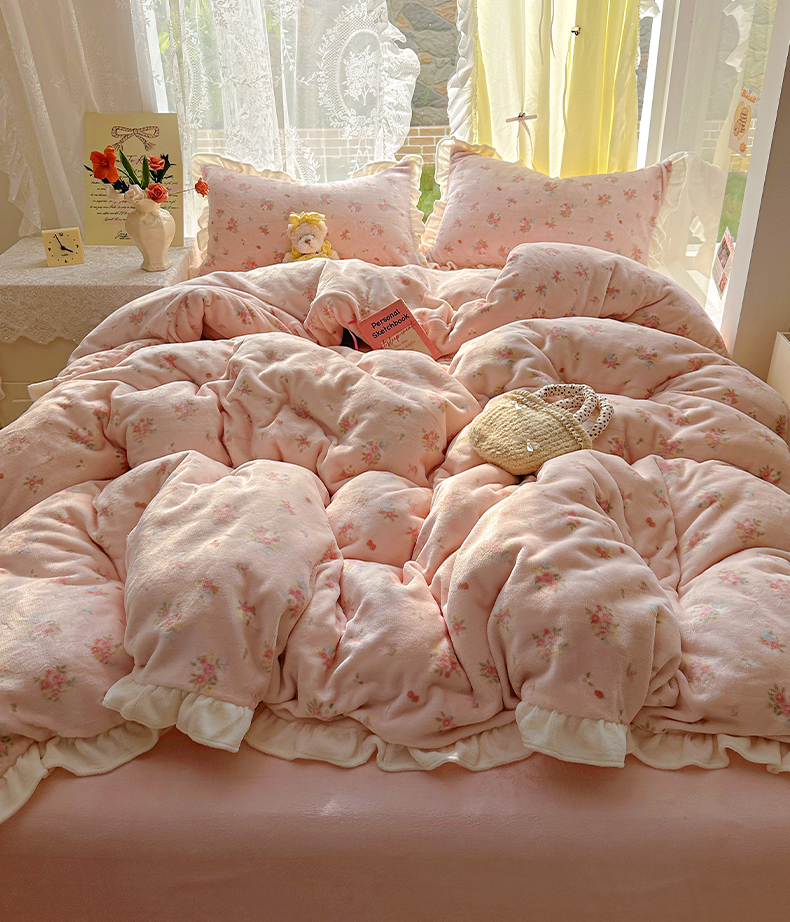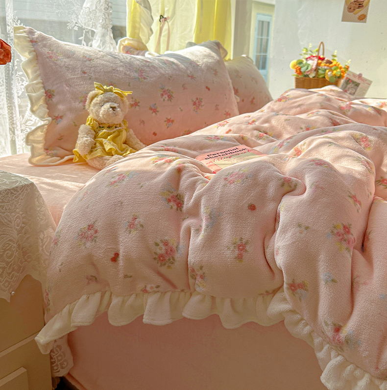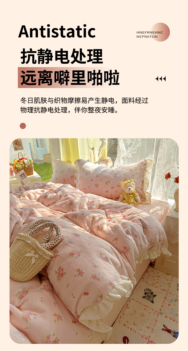 当前位置: 91家纺网 > 商品网购 > 床品套件 > 四件套 > 牛奶绒四件套 > 老K (原美阁) 25年新款A类200克花边款牛奶绒四件套蝴蝶结韩版牛奶绒 粉嘟小花