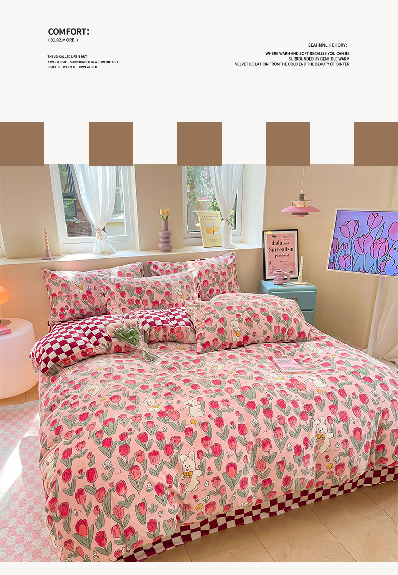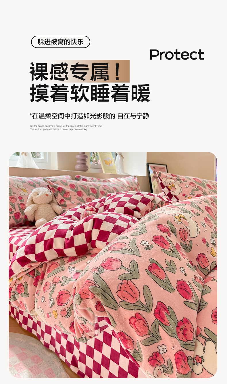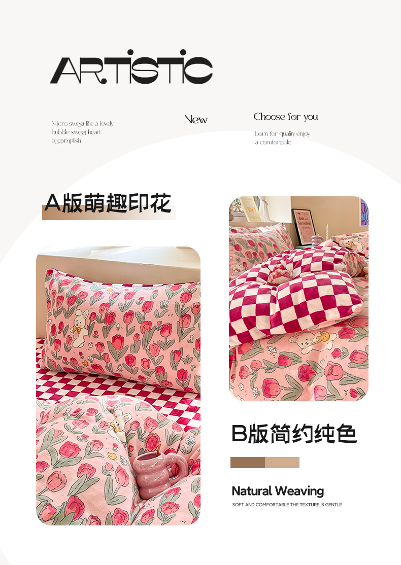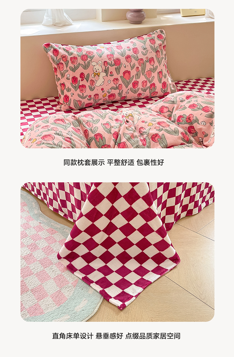 商品名称:雅居纺家纺 2025新款高克重牛奶绒印花单被套 休闲小兔