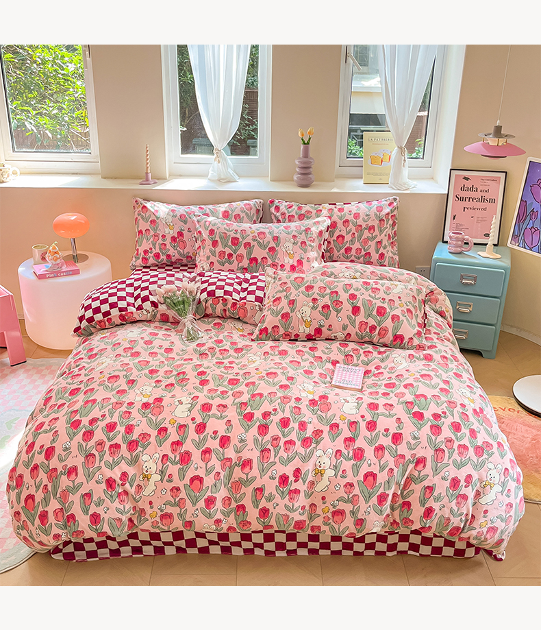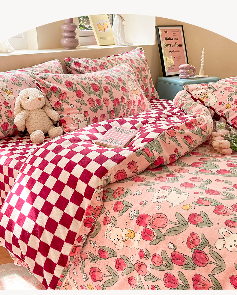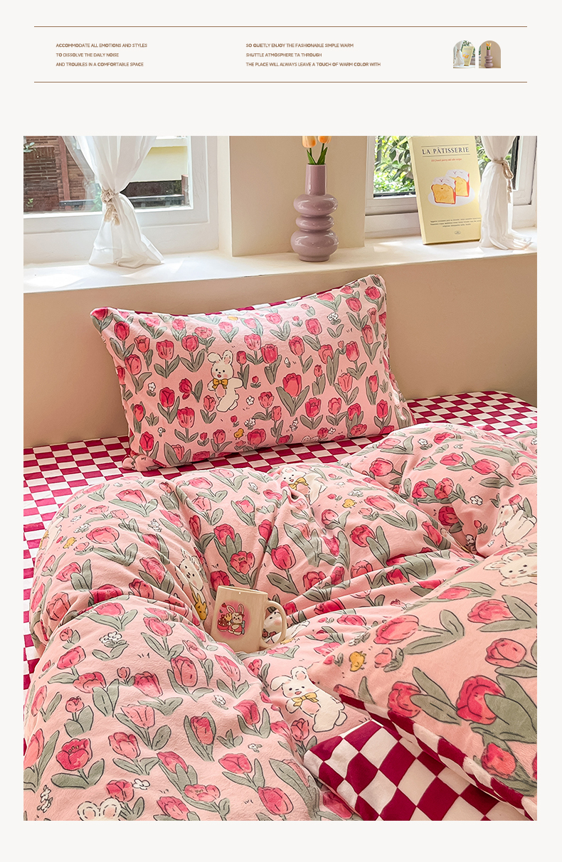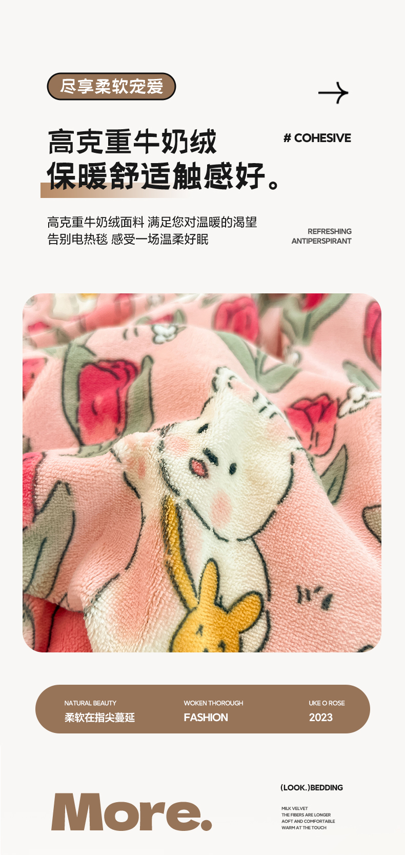 雅居纺家纺 2025新款高克重牛奶绒印花单被套 休闲小兔