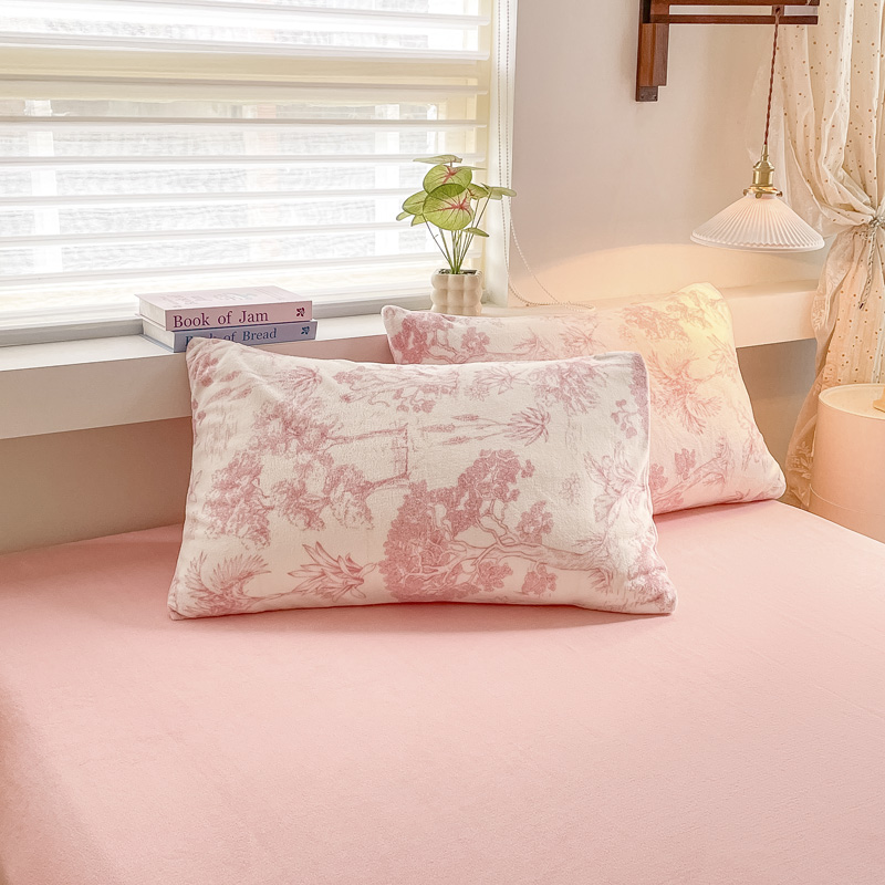 雅居纺家纺 2025新款高克重牛奶绒印花单枕套 蝴蝶结-粉