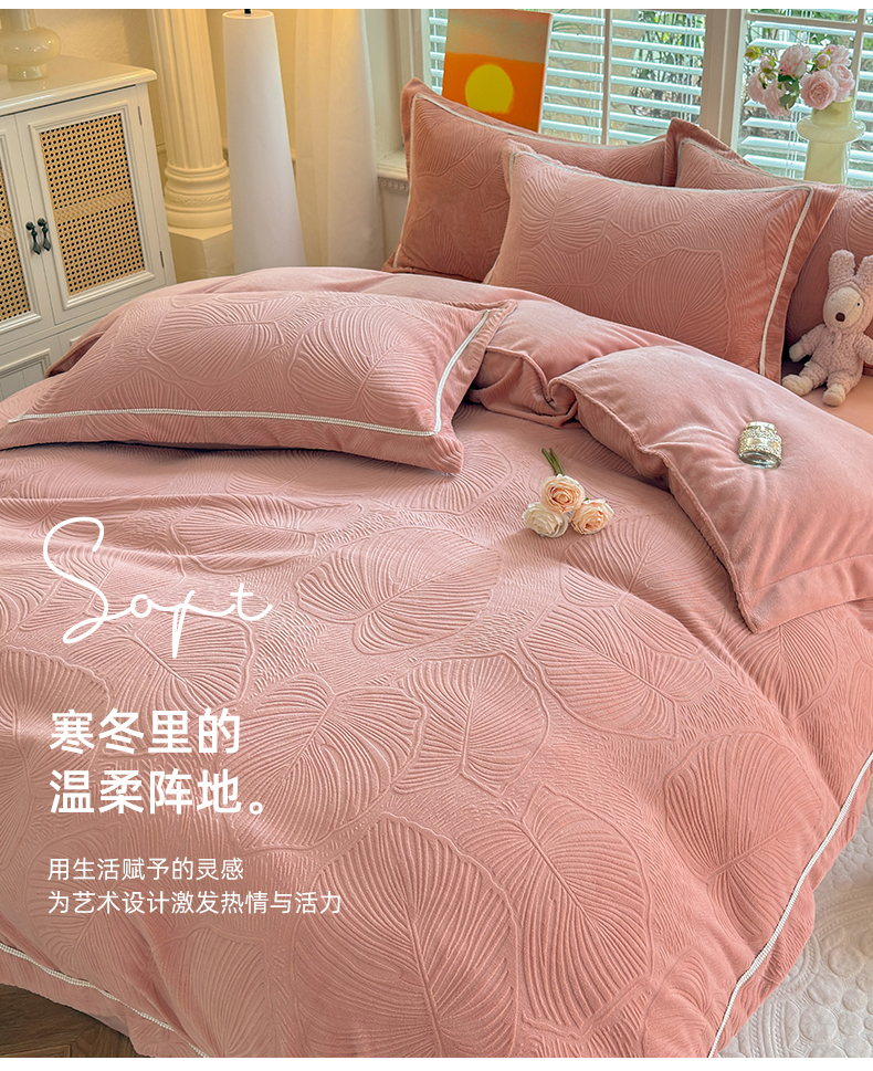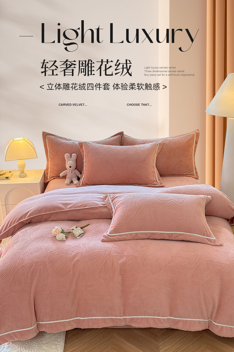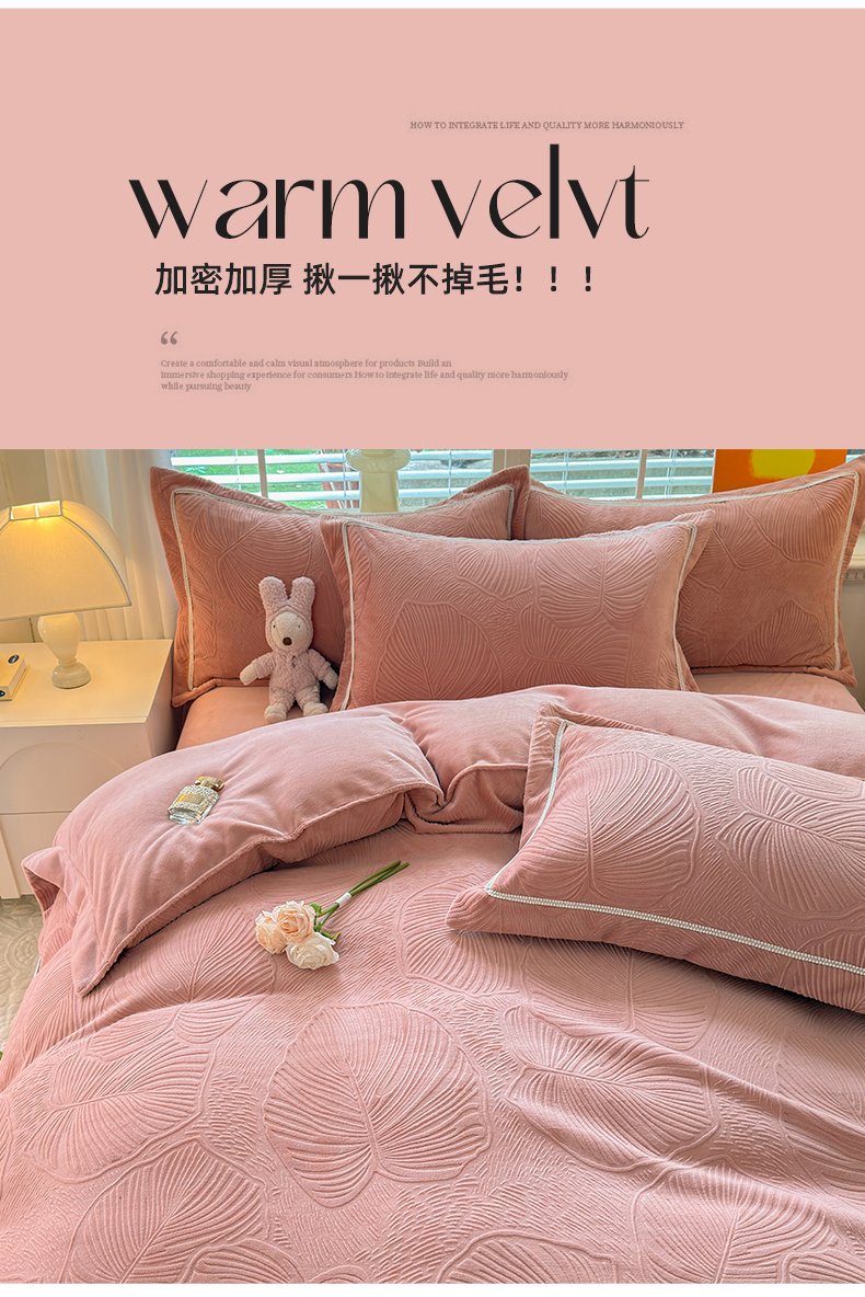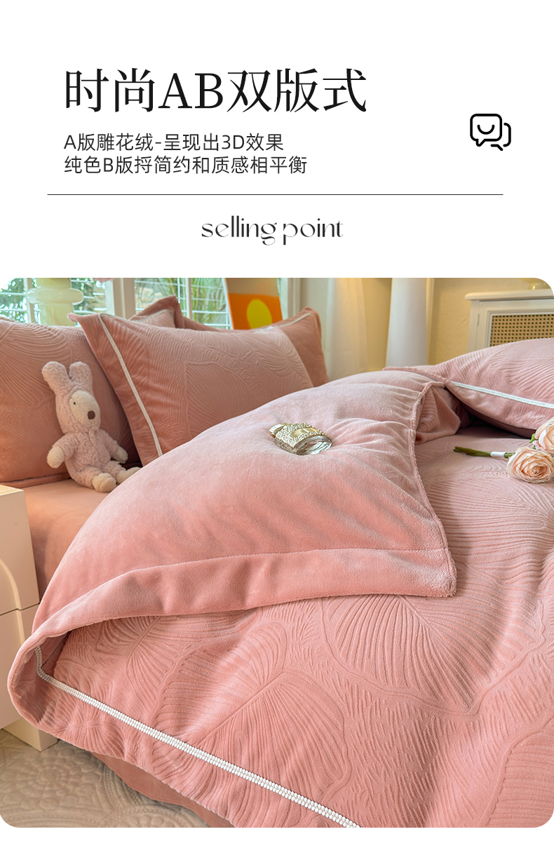 (总)艾唯希家纺 2025新款小兔毛全消光牛奶绒工艺四件套-绒樱桃系列,绒樱桃-粉,绒樱桃-驼