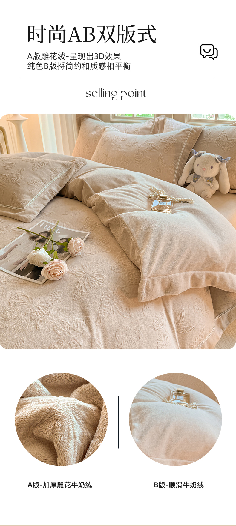 (总)艾唯希家纺 2025新款小兔毛全消光牛奶绒工艺四件套-绒樱桃系列,绒樱桃-粉,绒樱桃-驼