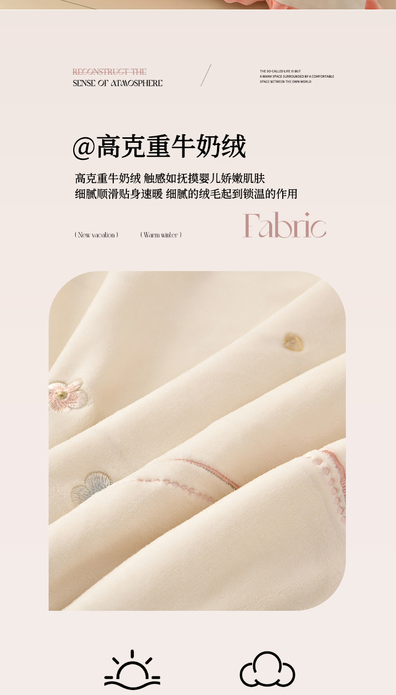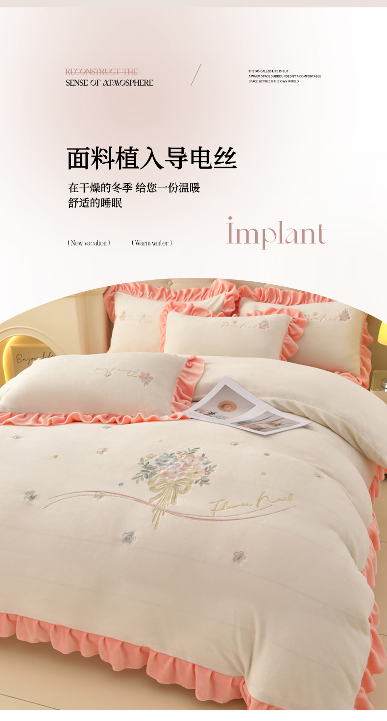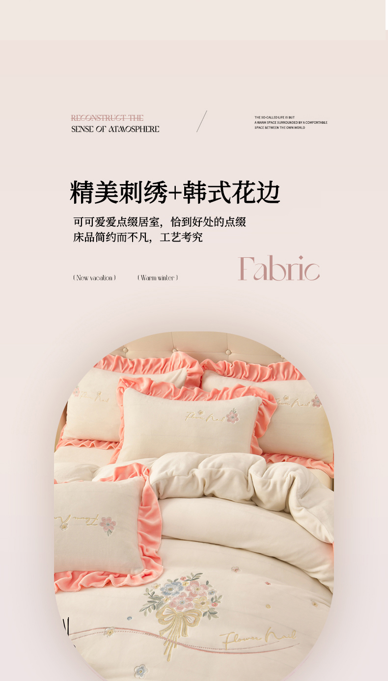 商品名称:畅畅家纺 2025新款亲肤舒适冬季刺绣花边保暖牛奶绒四件套-花束 花束-米白