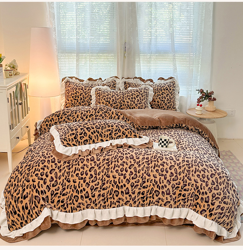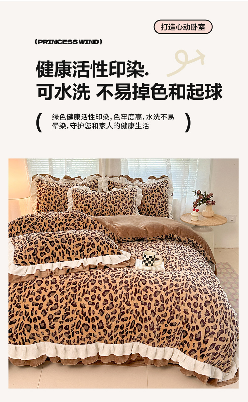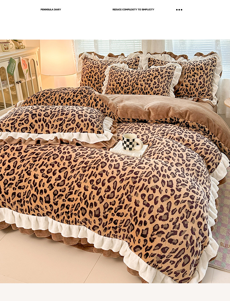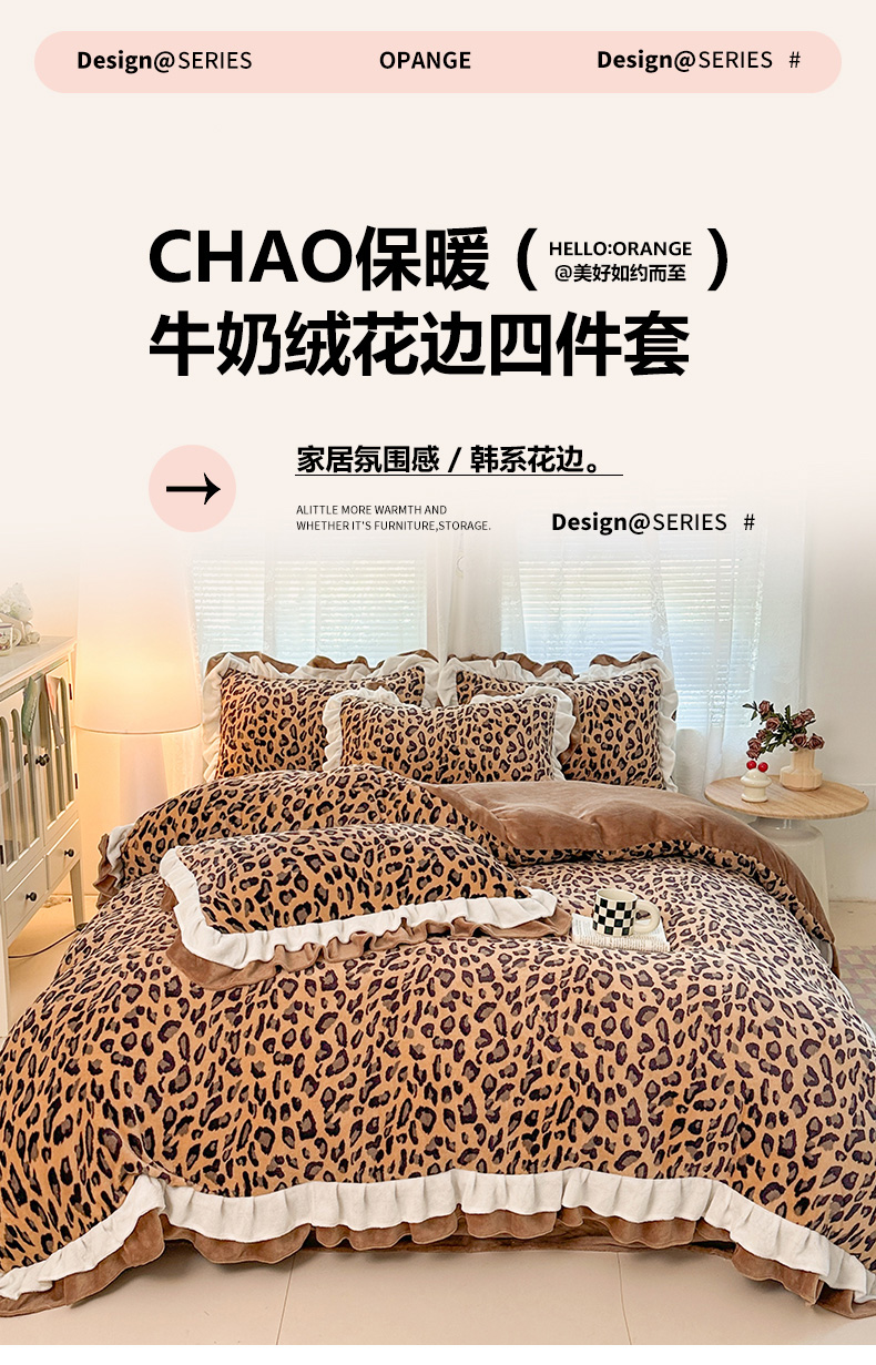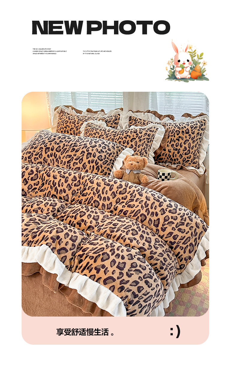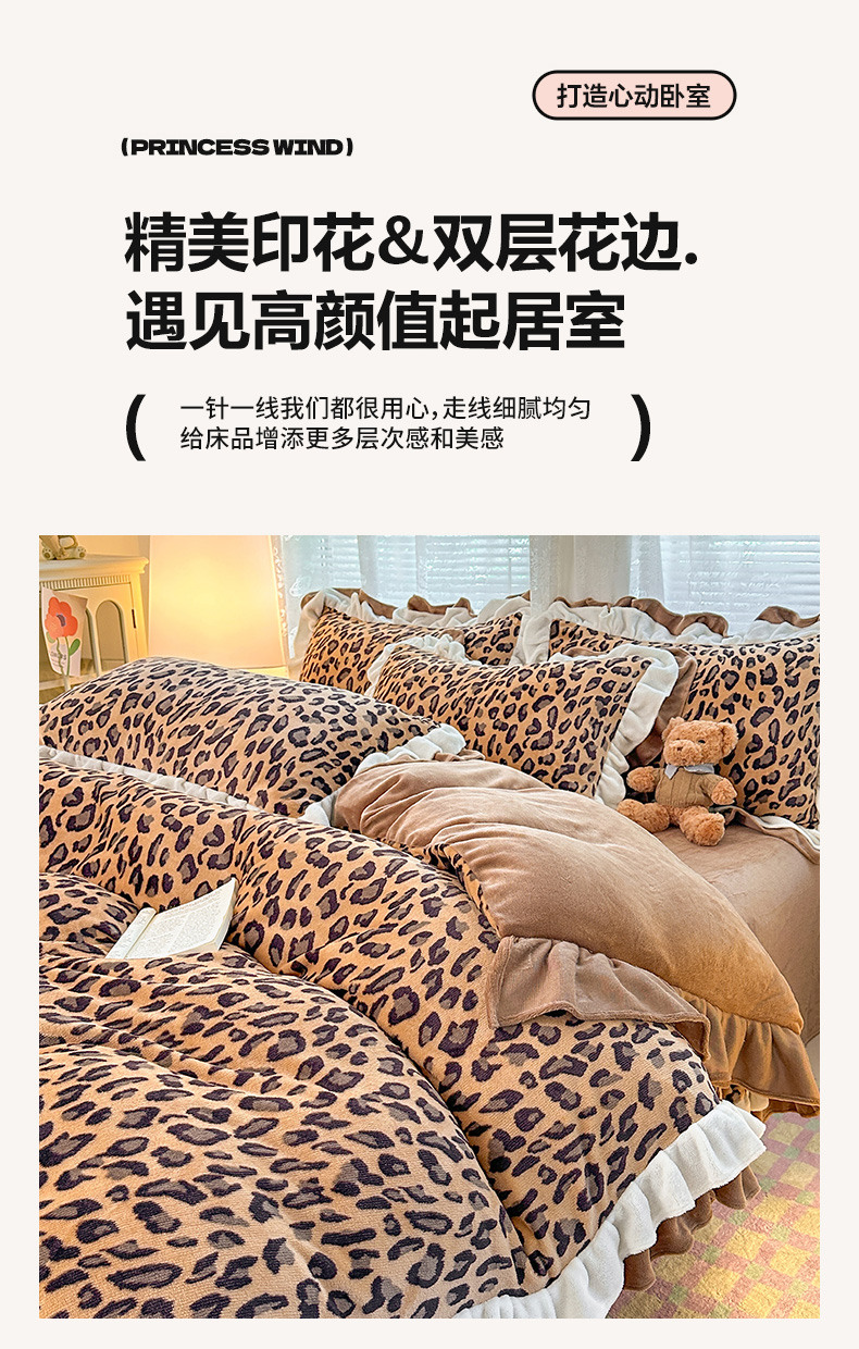 当前位置: 91家纺网 > 商品网购 > 床品套件 > 四件套 > 牛奶绒四件套 > 安哆啦家纺 2025新款小清新双层花边款高克重牛奶绒四件套 时尚豹纹