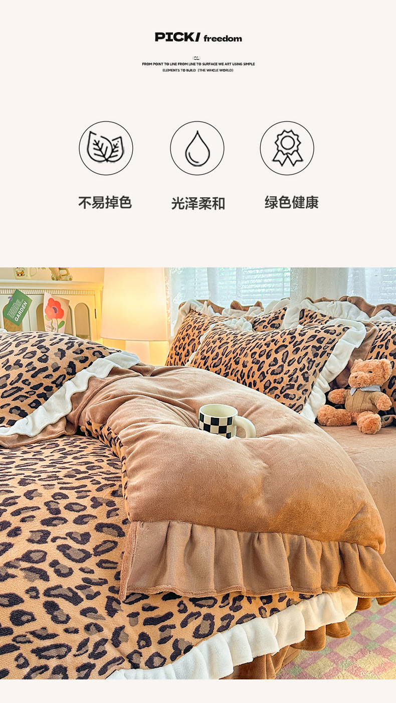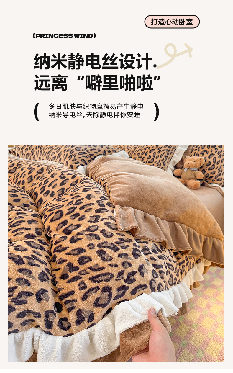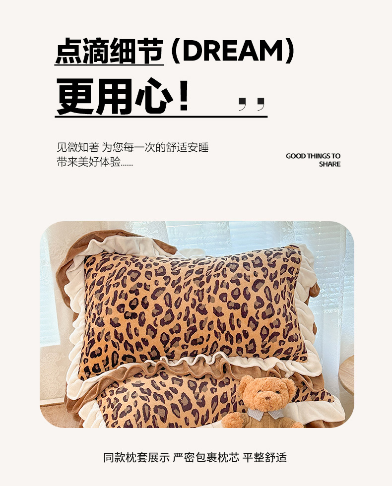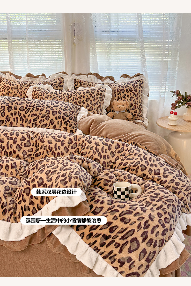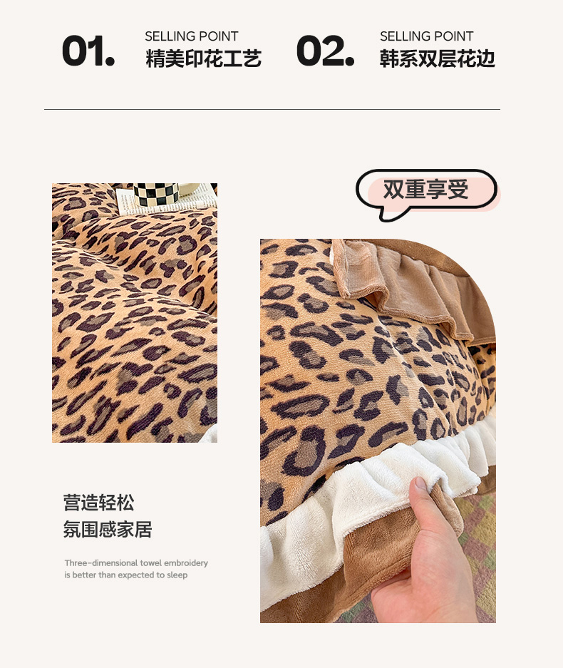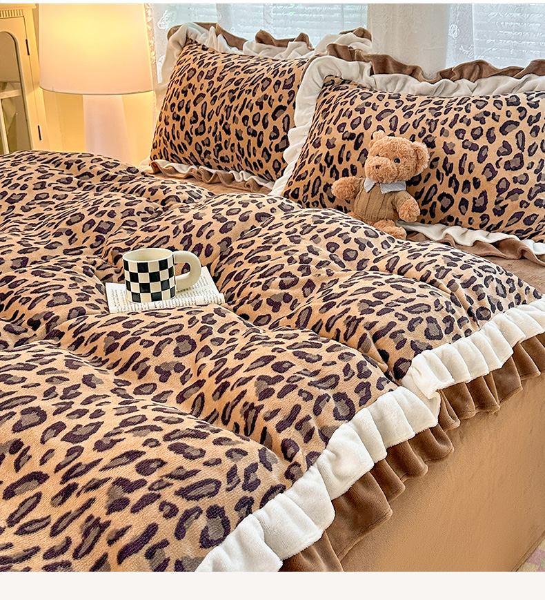 当前位置: 91家纺网 > 商品网购 > 床品套件 > 四件套 > 牛奶绒四件套 > 安哆啦家纺 2025新款小清新双层花边款高克重牛奶绒四件套 时尚豹纹