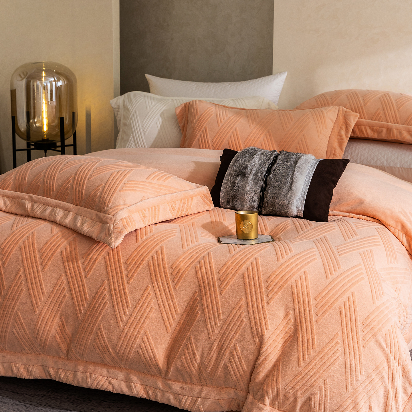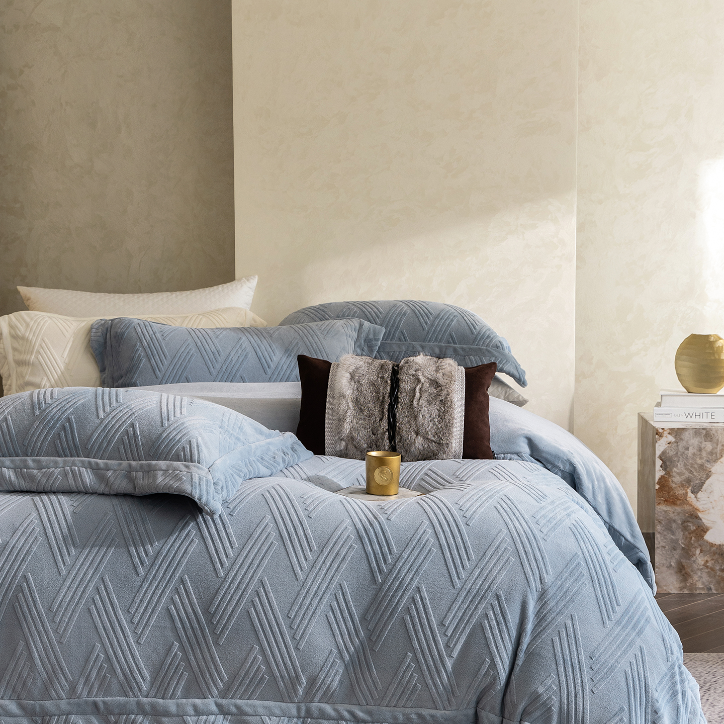 蓝梦 2025新款全消光雕花牛奶绒四件套-元晞 甘蓝
