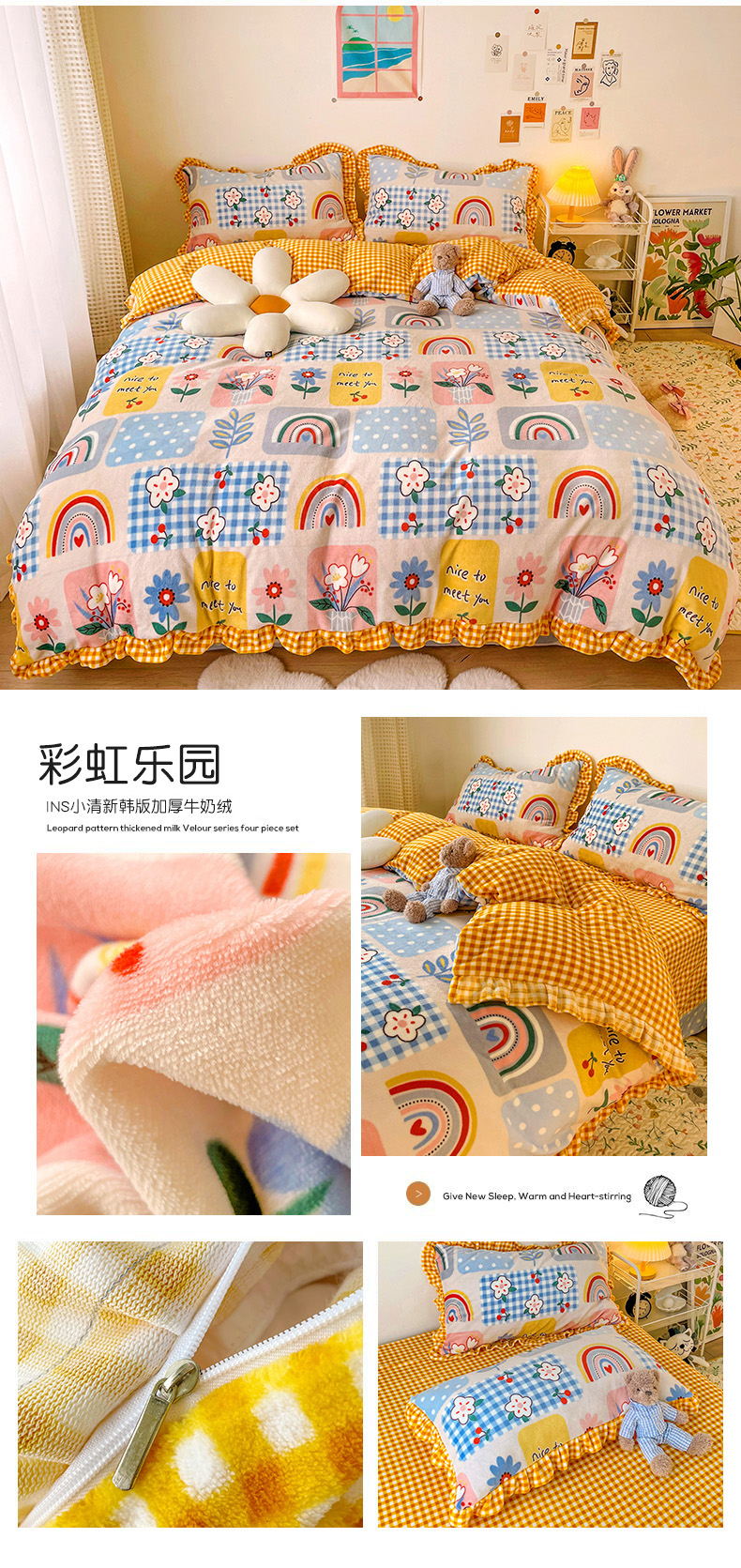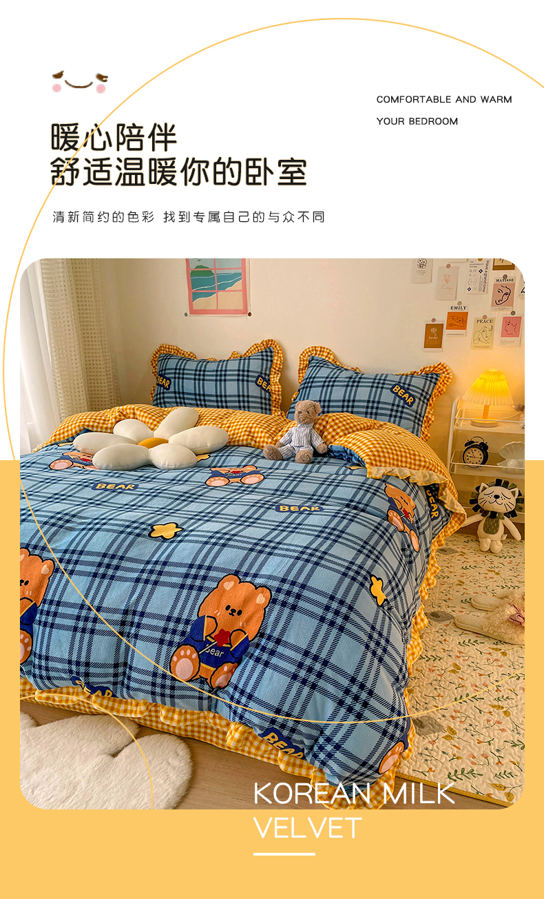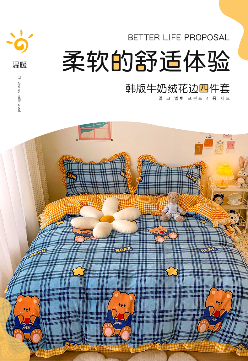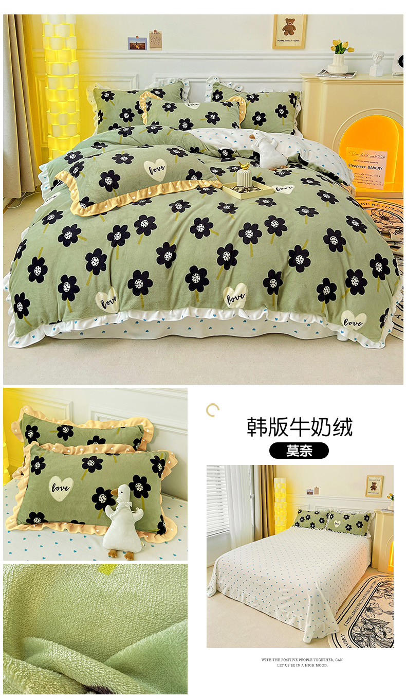 商品名称:梵克保罗 2025秋冬新品韩版印花牛奶绒花边款四件套 花园里