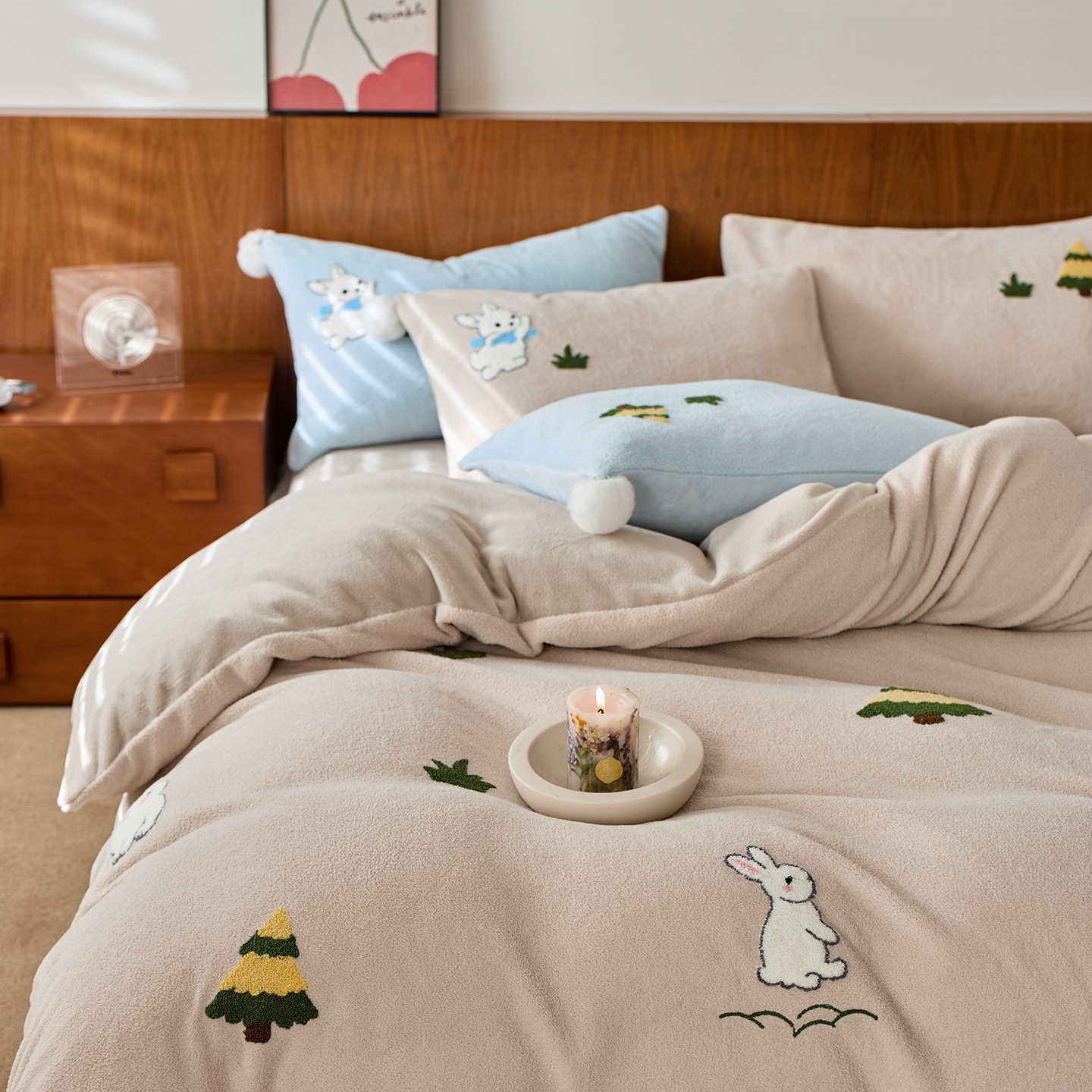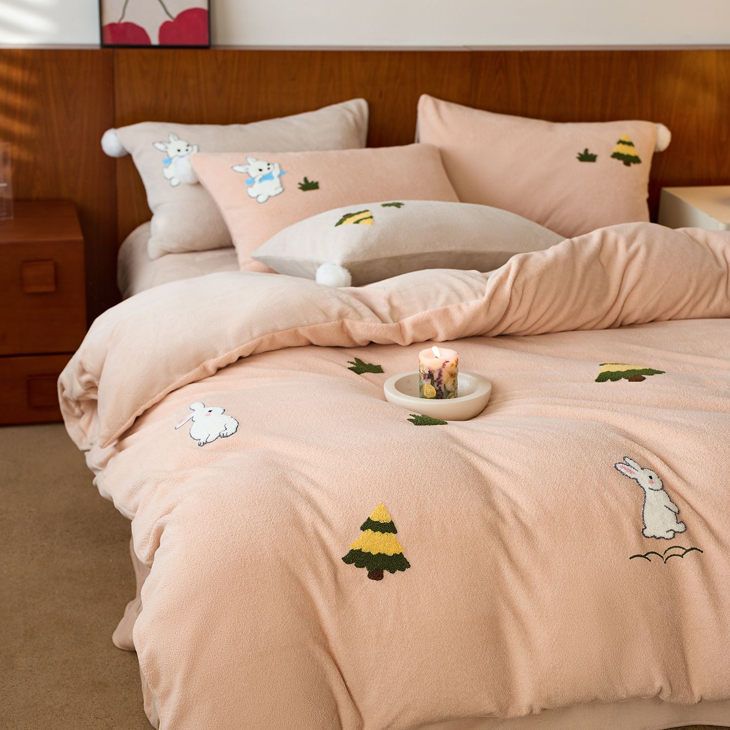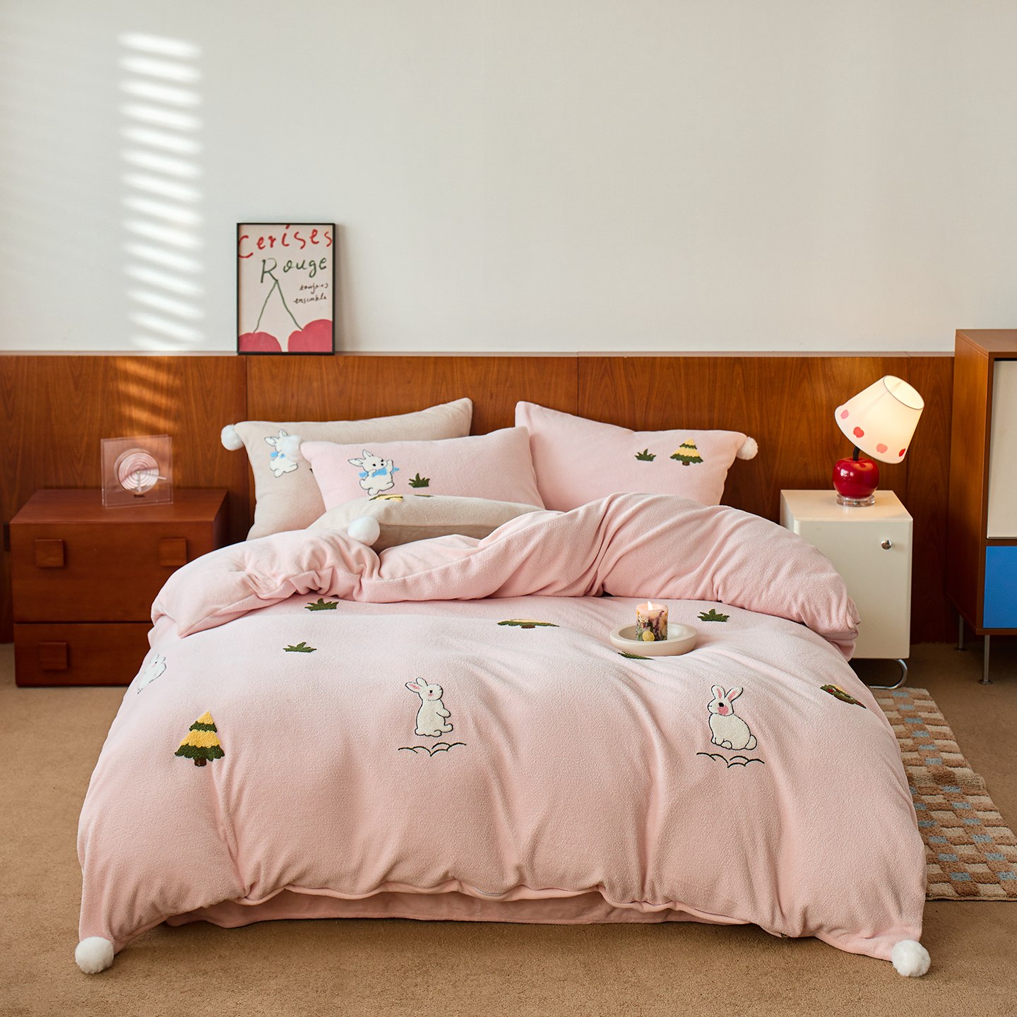 商品名称:蓝梦 2025新款全消光毛巾绣艾尼绒四件套-艾尼兔系列 浅绿