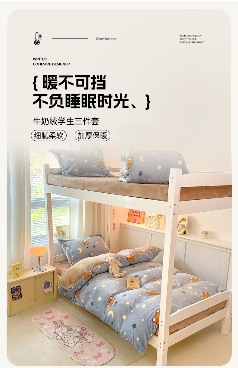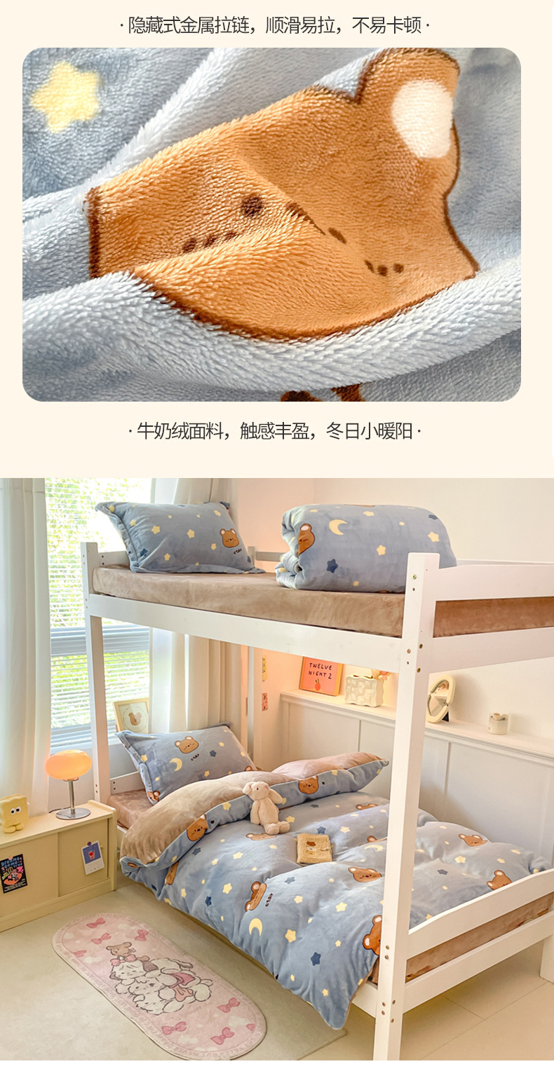 当前位置: 91家纺网 > 商品网购 > 床品套件 > 三件套 > 寻米 2025新款高克重加厚保暖牛奶绒学生宿舍单床笠单件床笠系列二 晚安小熊-咖