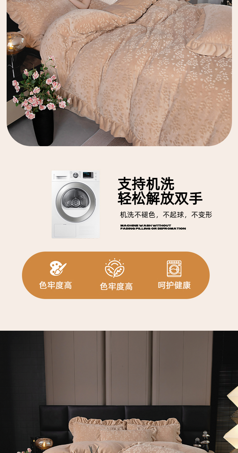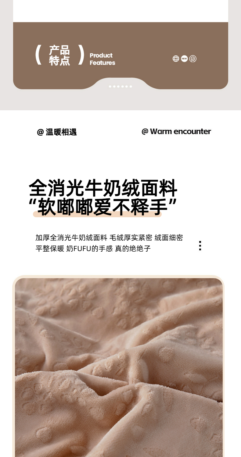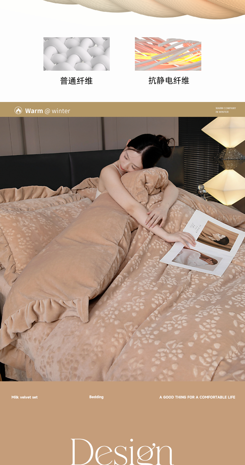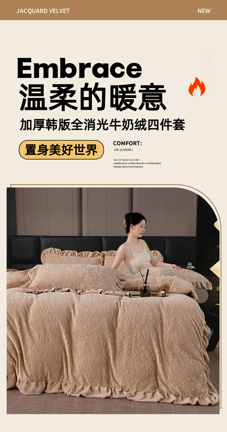 商品名称:找底底家纺 2025新款加厚韩版全消光烂花牛奶绒四件套(加厚8斤重 日销20单客户优惠8元) 澜花-咖色