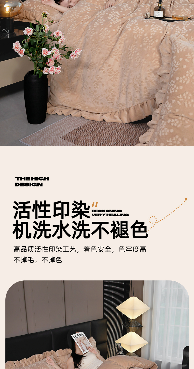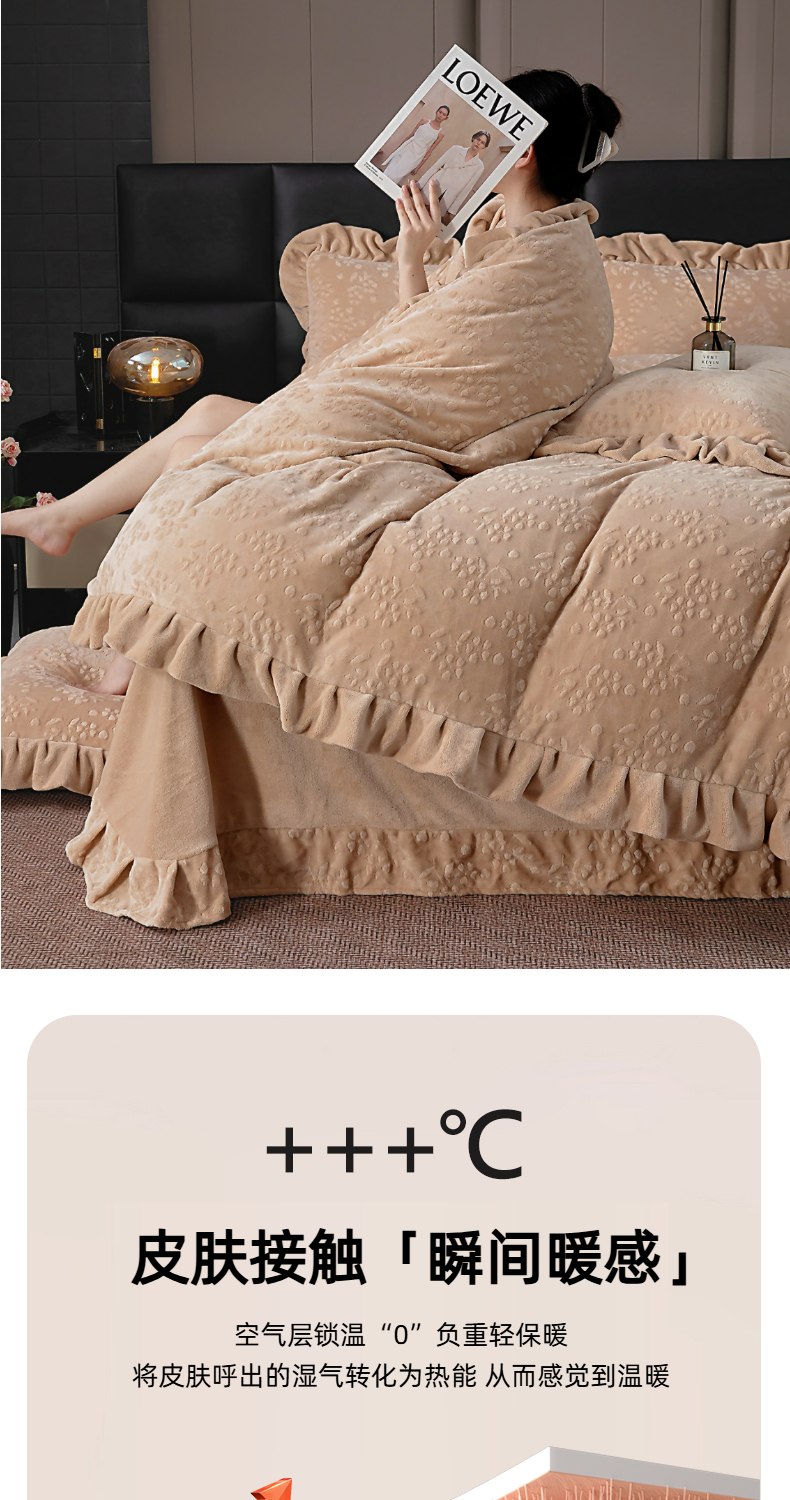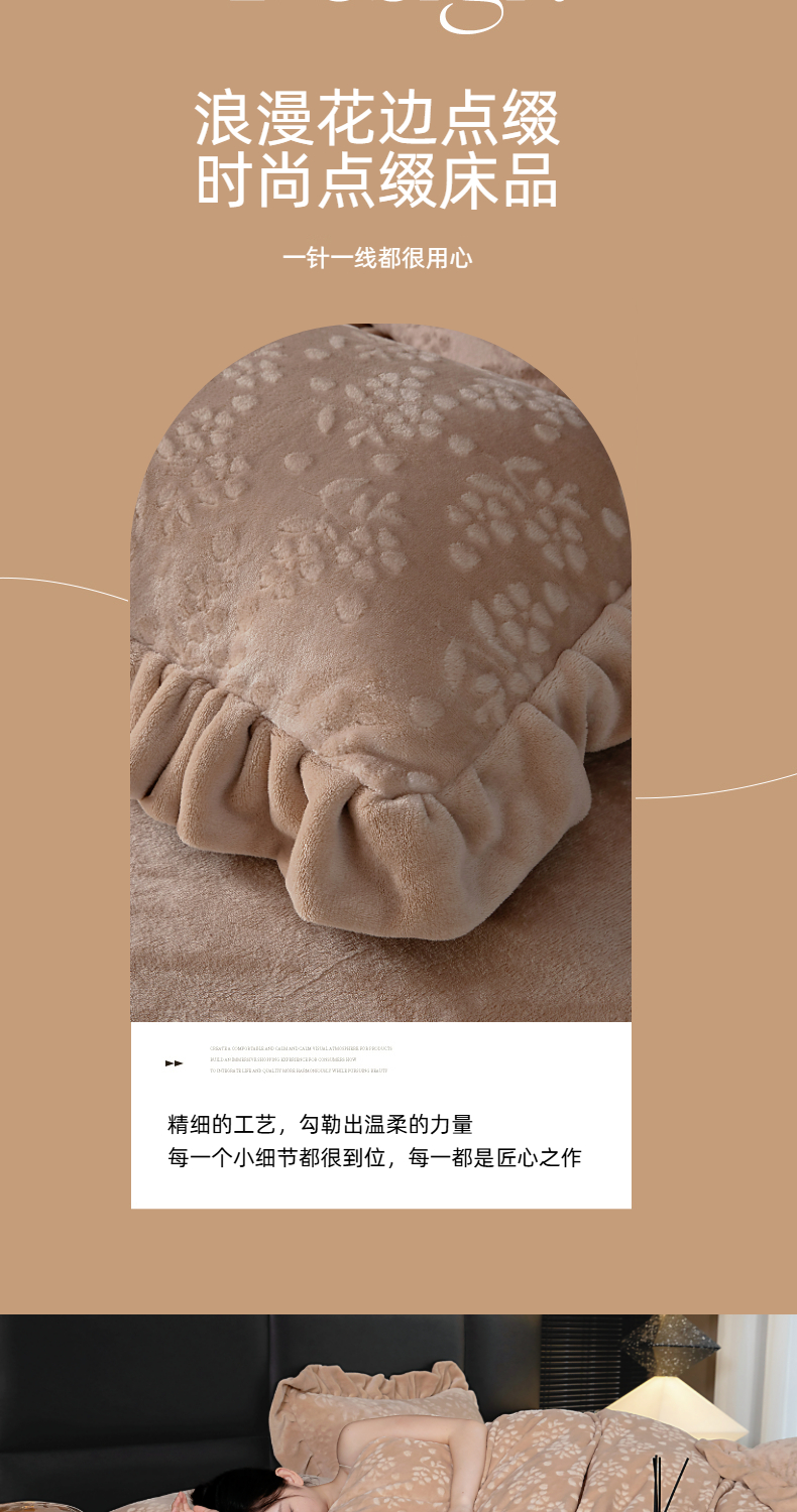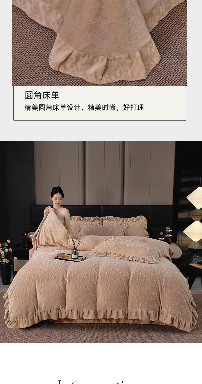 (总)找底底家纺 2025新款花边9-10斤牛奶绒床盖款四件套,花妖,梨花落,小樱桃,紫蔻