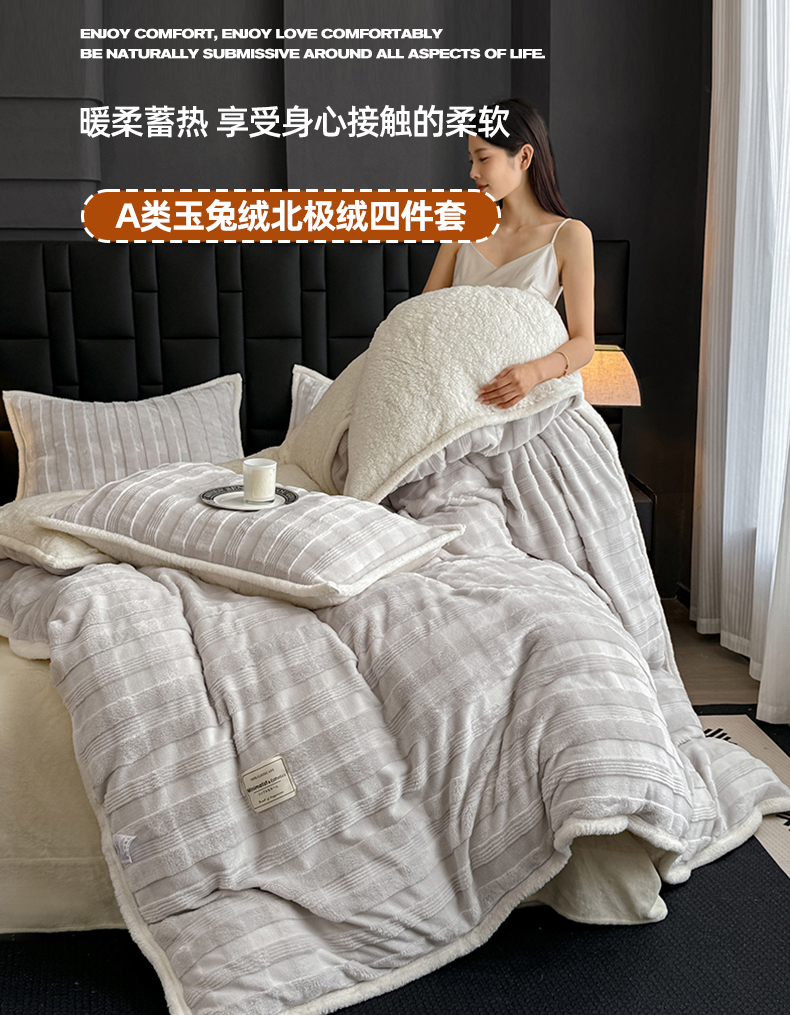 当前位置: 91家纺网 > 商品网购 > 床品套件 > 四件套 > 其它四件套 > 青竹苑 2025新款A类玉兔绒北极绒纯色四件套 玉兔灰【双面加绒】