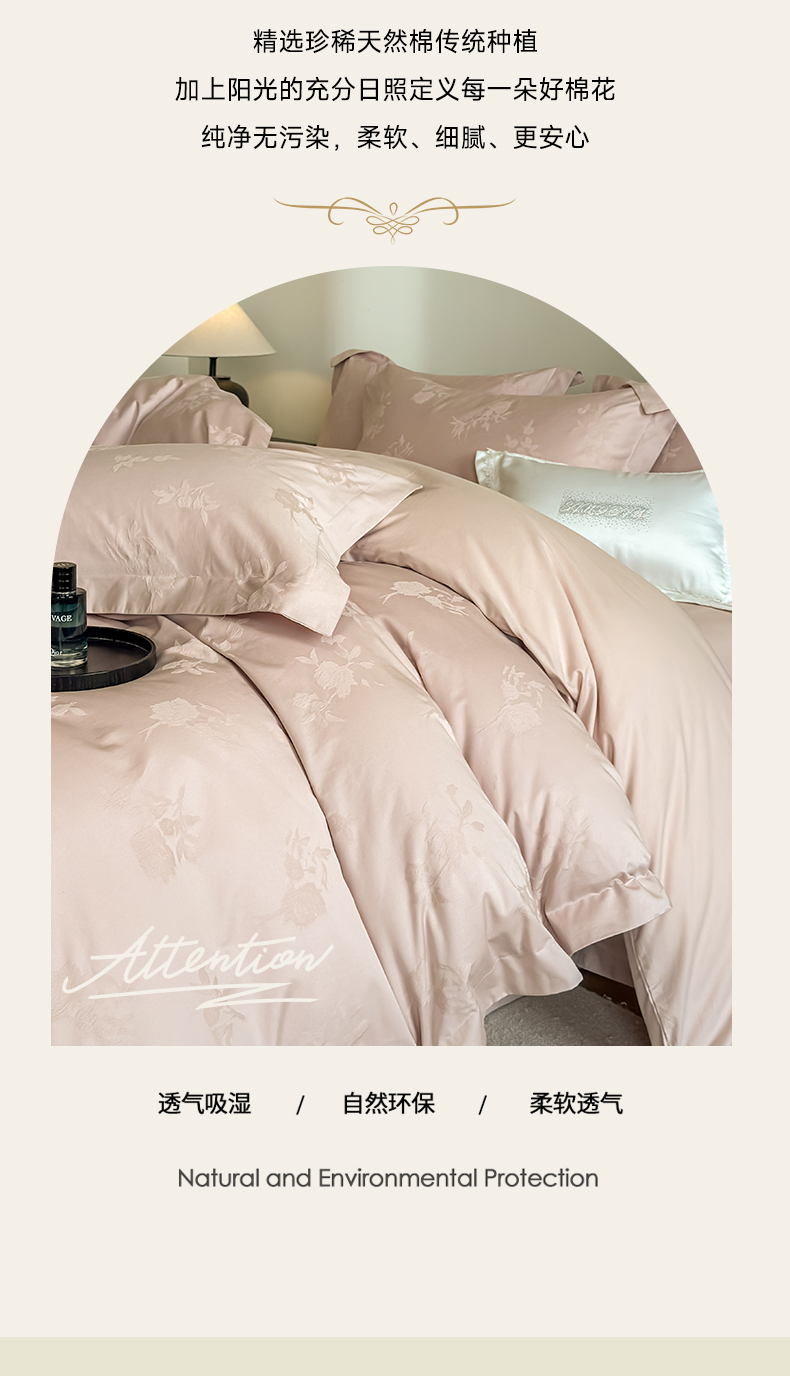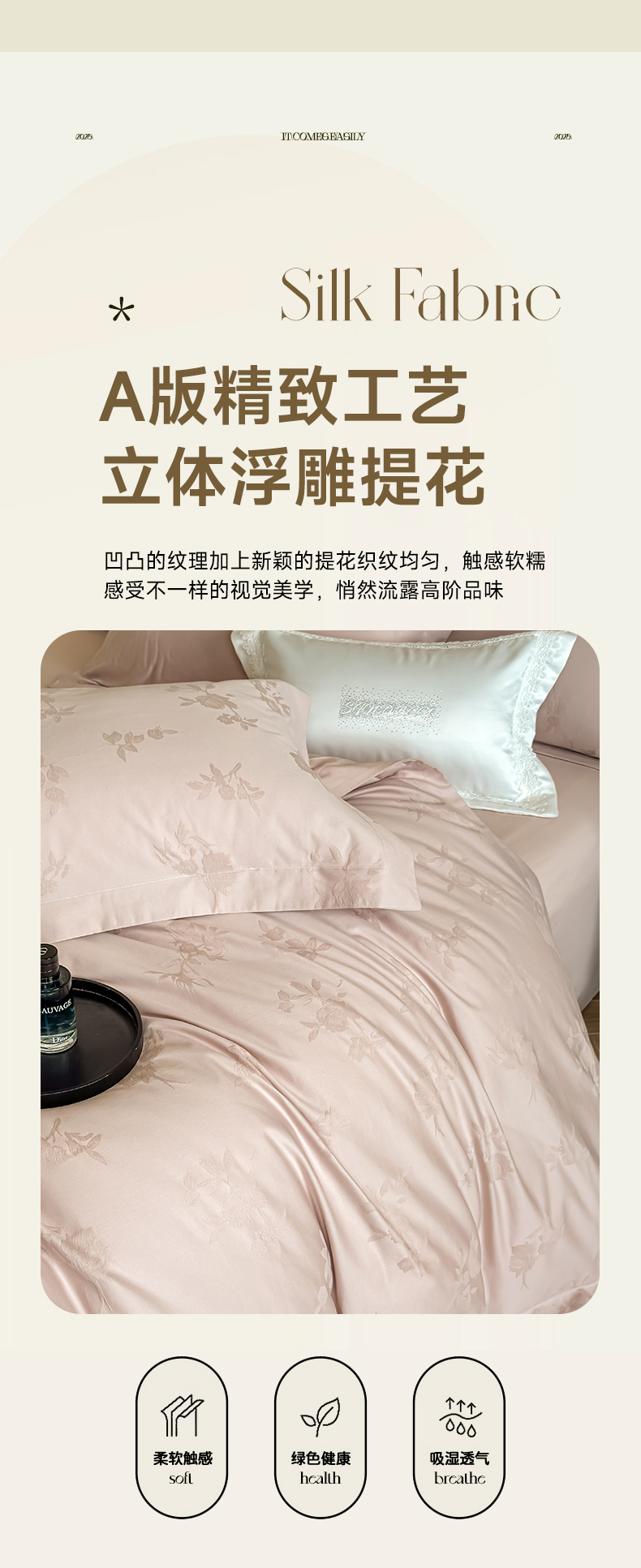 (总)魅都 2025新款100s长绒棉简约织带轻奢风四件套-罗伊,爱马橙,亮粉,浅灰,香槟金,香芋紫
