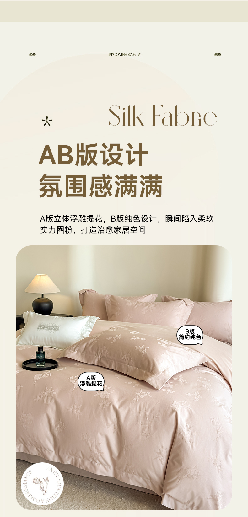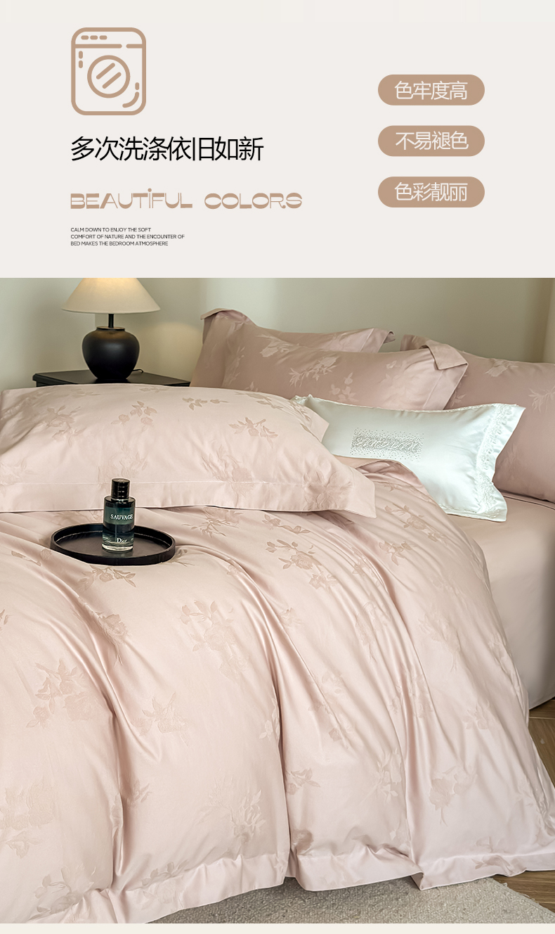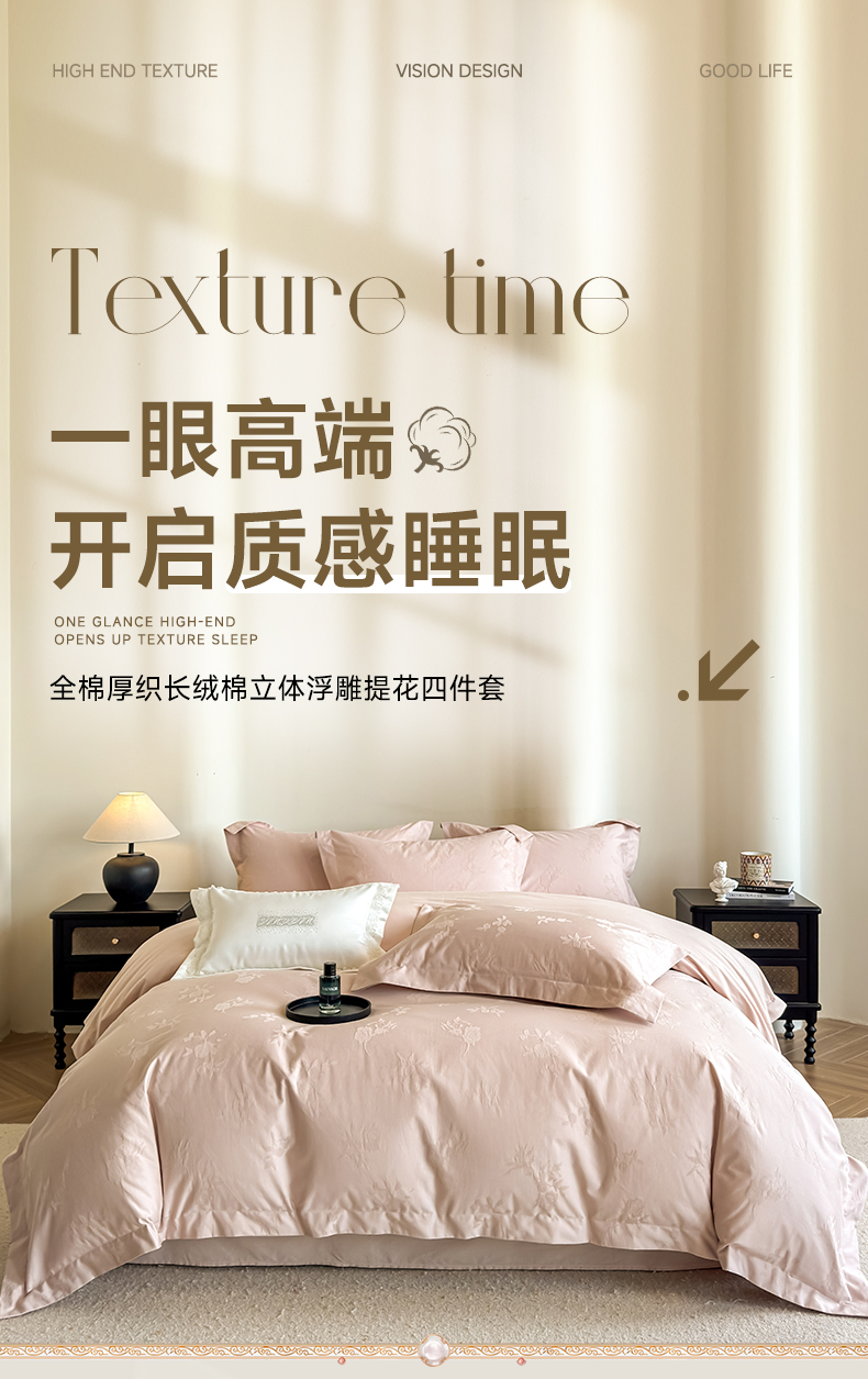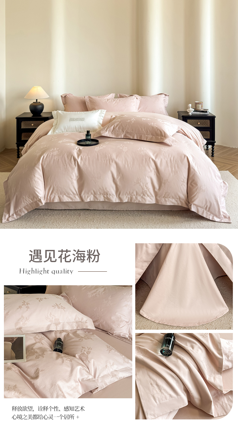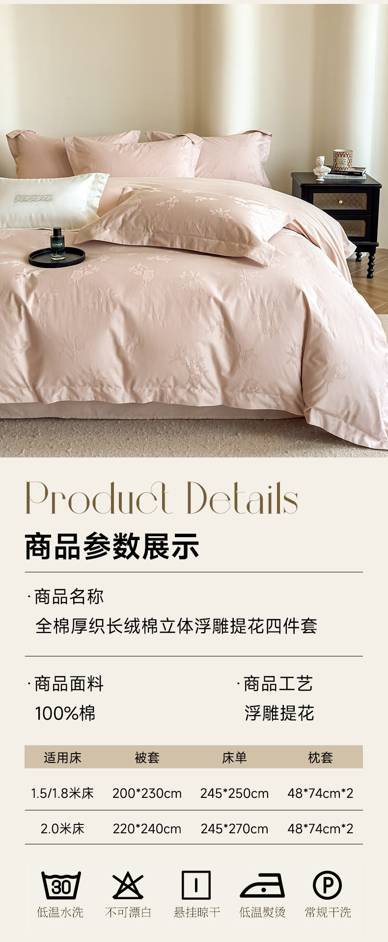 (总)魅都 2025秋冬全棉厚织长绒棉磨毛立体浮雕提花四件套全棉四件套遇见花海,遇见花海粉