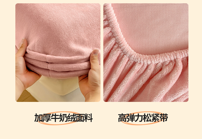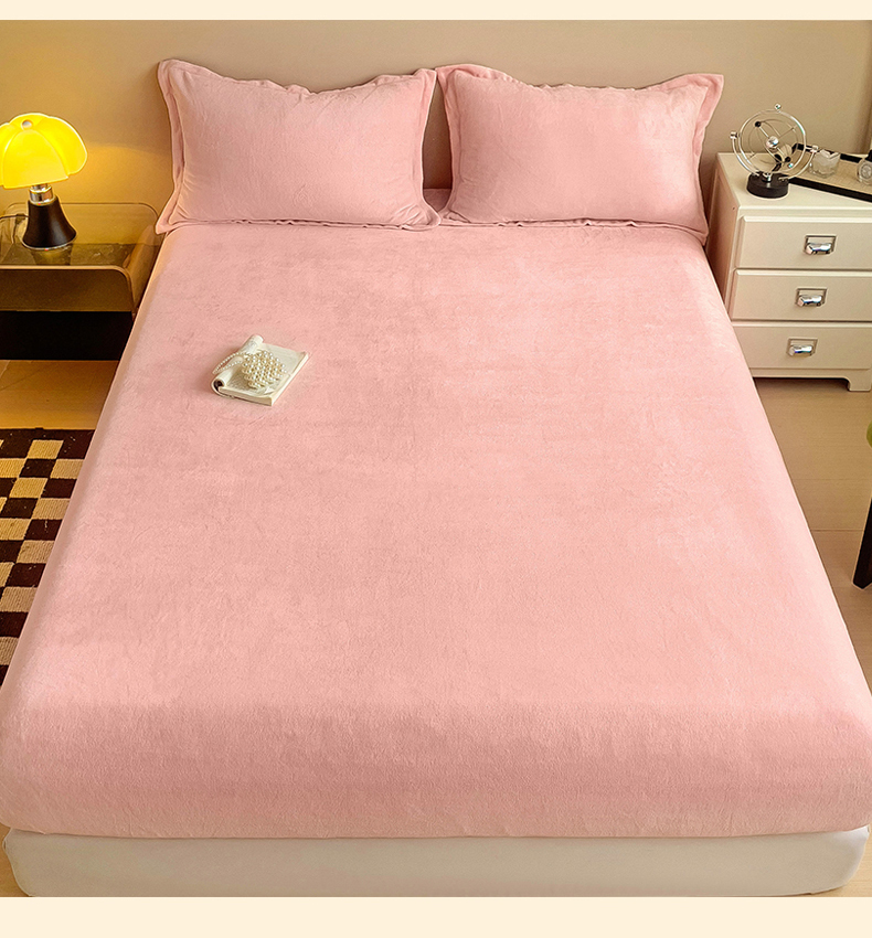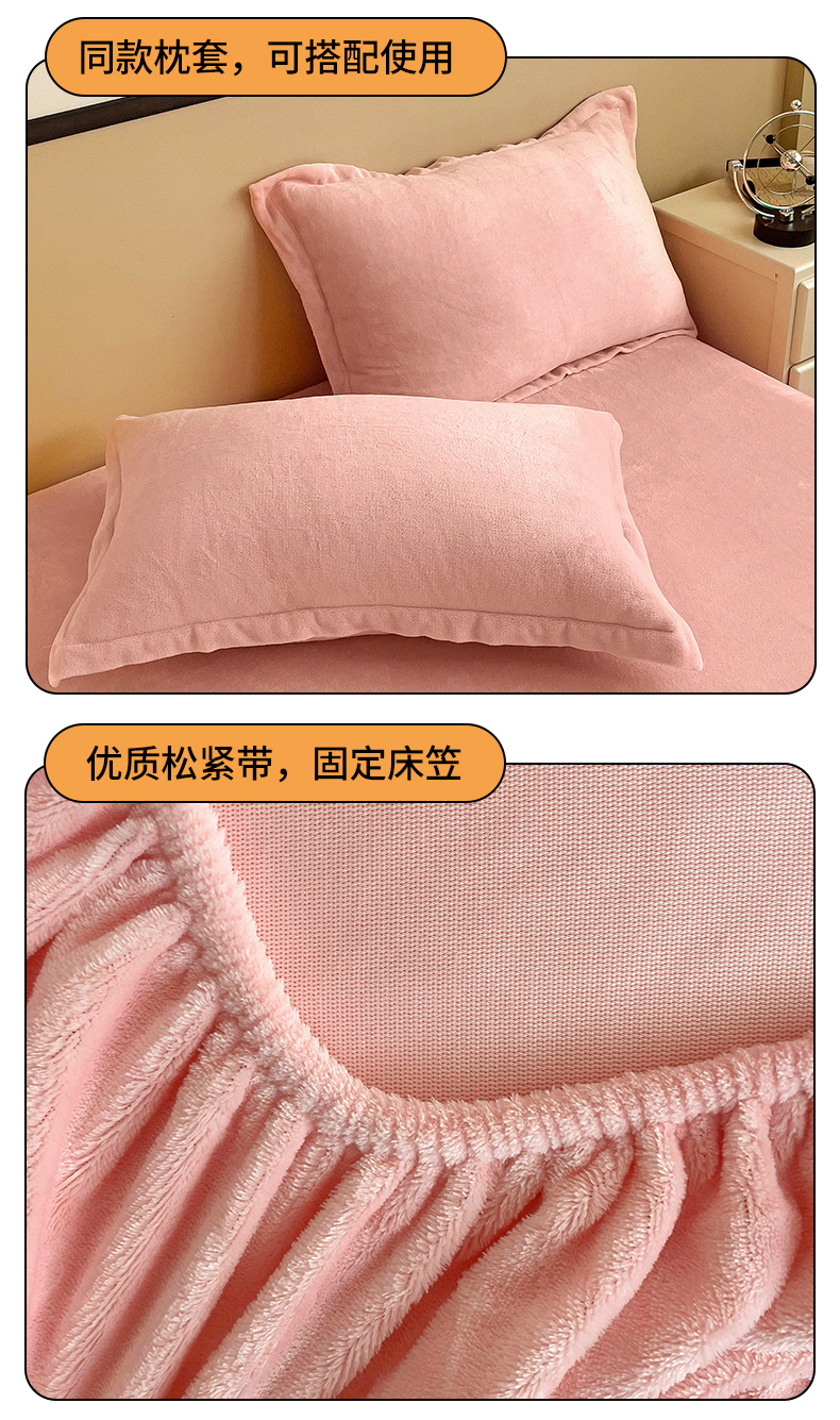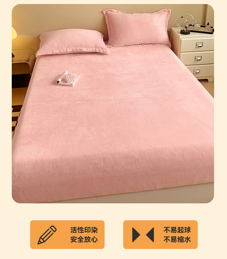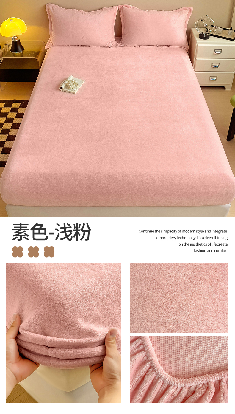 名兮家居 2025新款高克重加厚纯色牛奶绒床笠床单 素色-浅粉