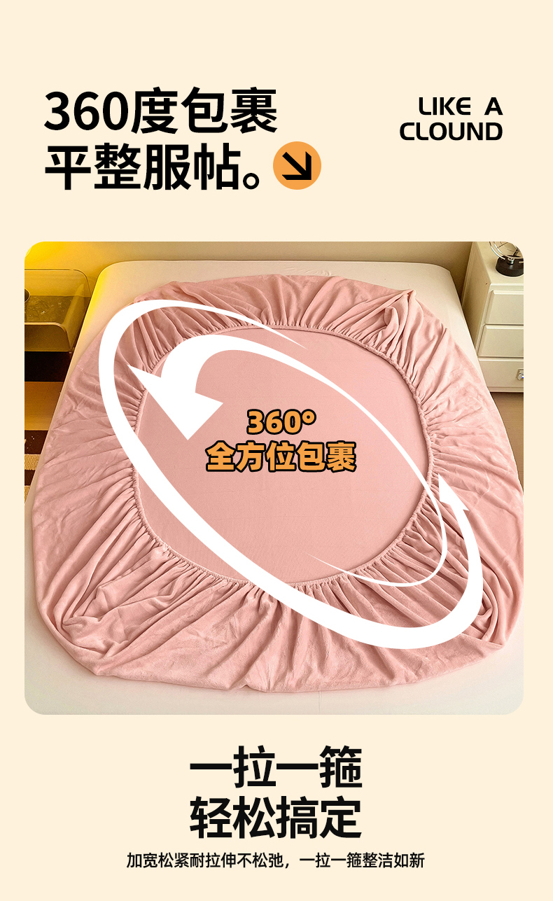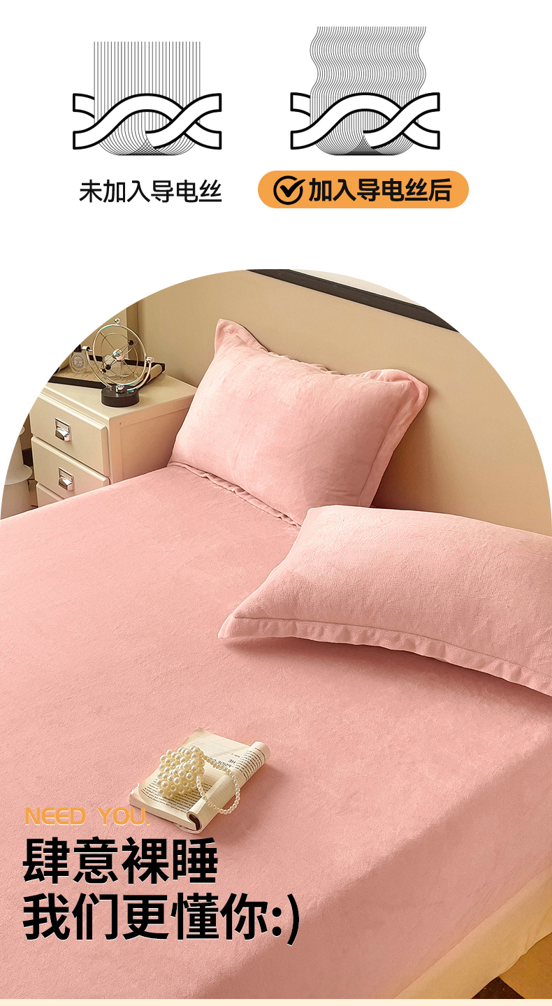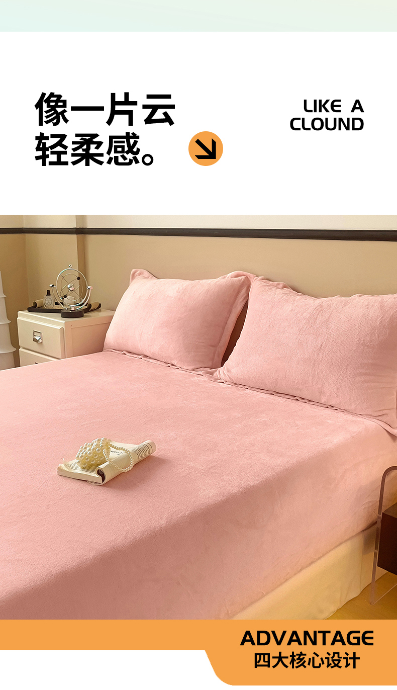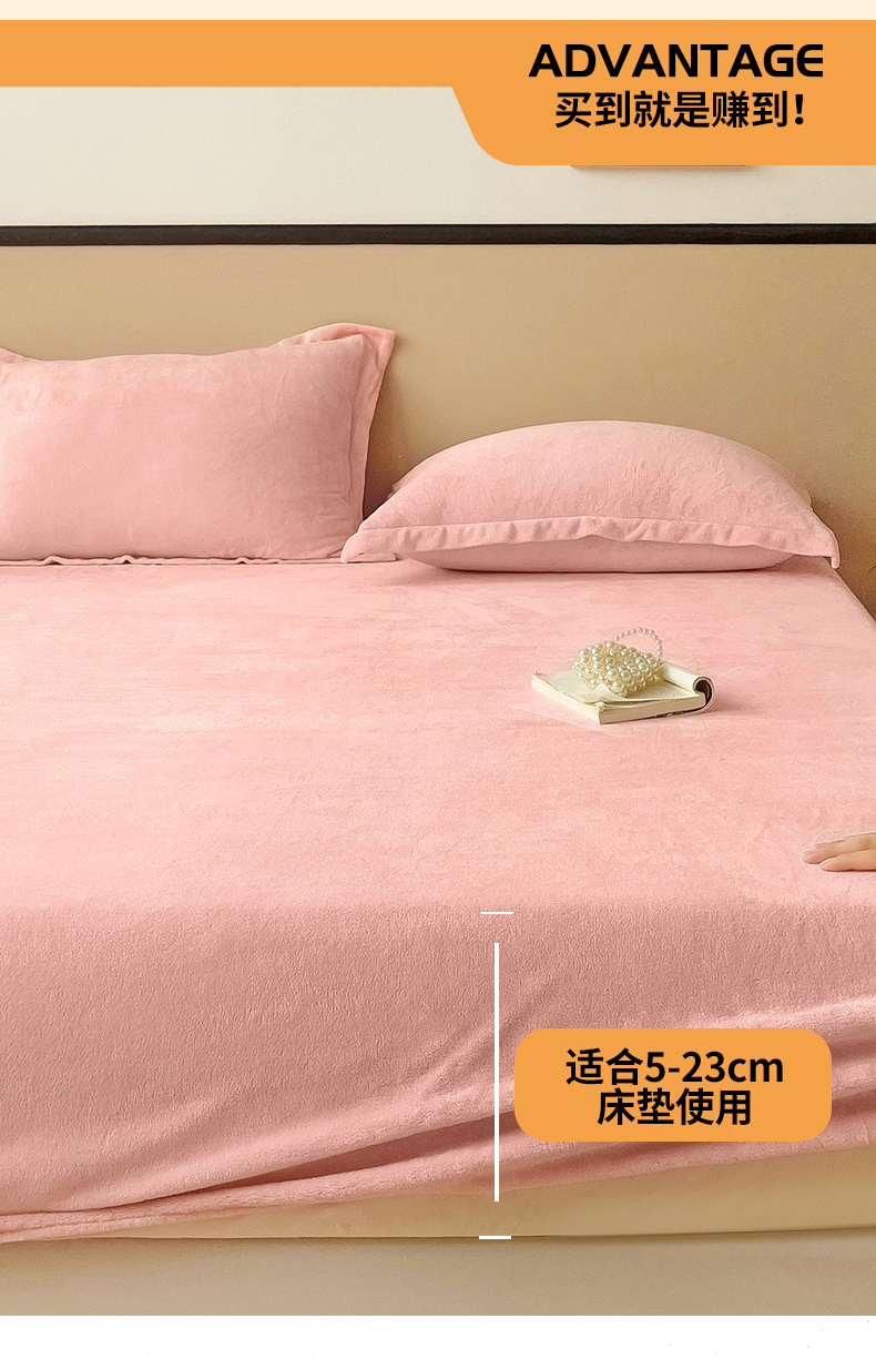 名兮家居 2025新款高克重加厚纯色牛奶绒床笠床单 素色-浅粉