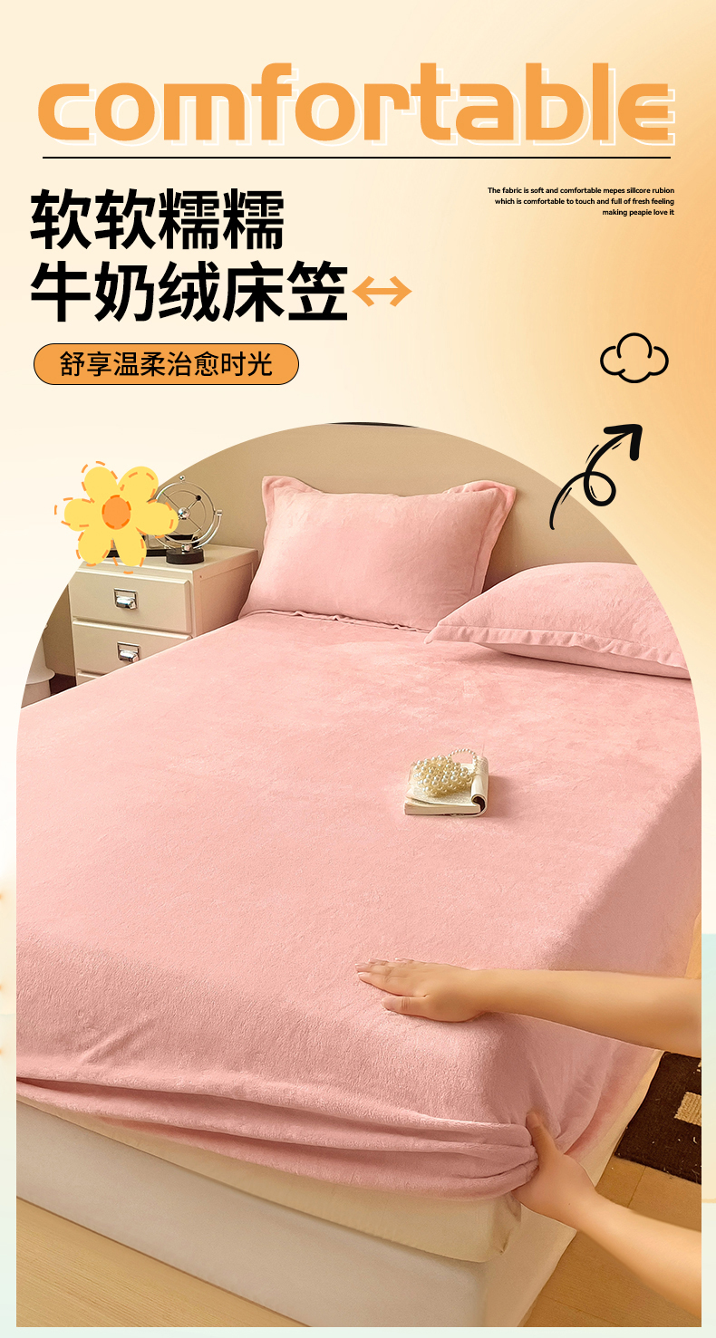 • 91家纺网 家纺一手货源 找家纺 名兮家居 2025新款高克重加厚纯色牛奶绒床笠床单 素色-浅粉