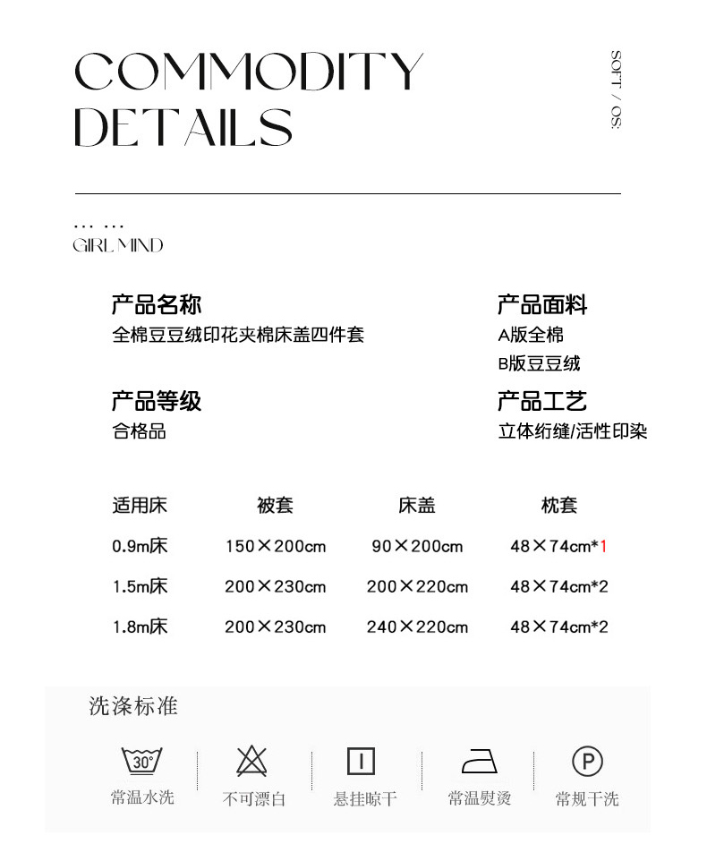 商品名称:漫时光 2025新款正面纯棉反面宝宝绒印花夹棉砂洗床盖四件套 班尼熊