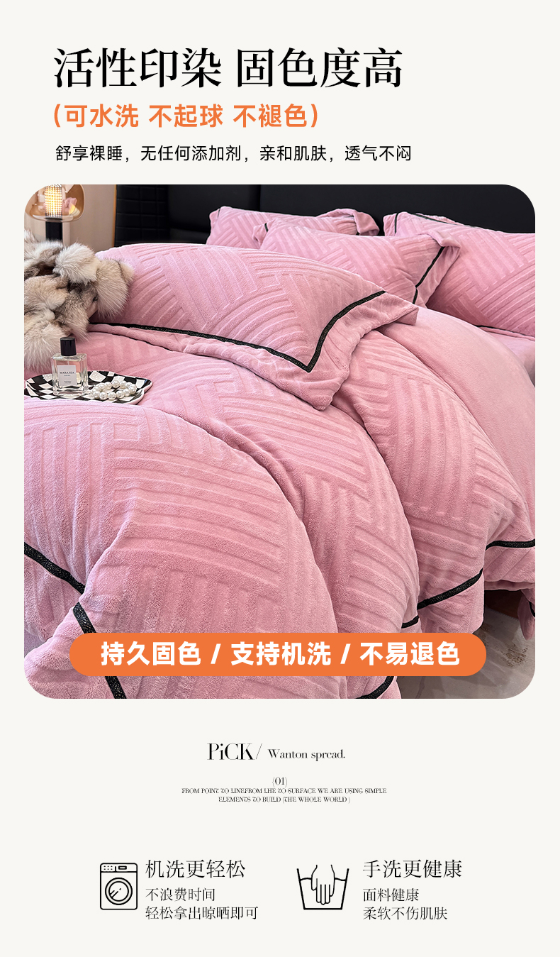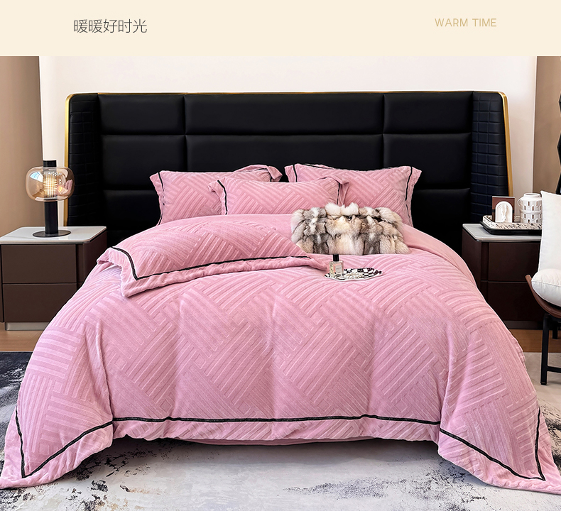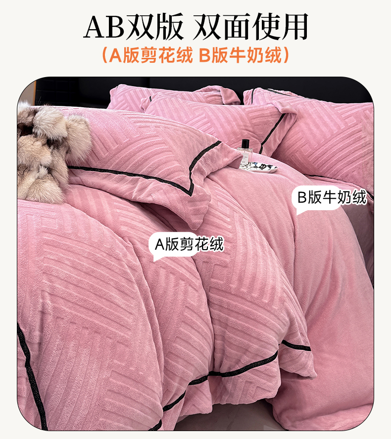 商品名称:家居1号家纺 2025新款230克全消光牛奶绒剪花四件套-暖意 暖意-豆沙