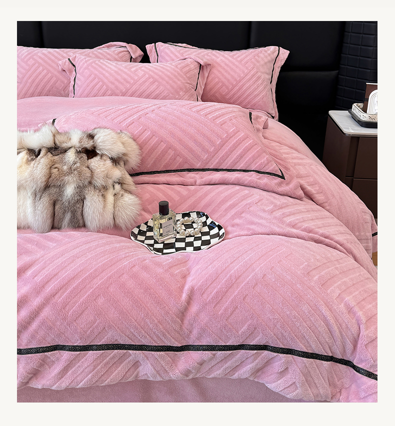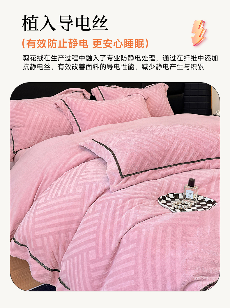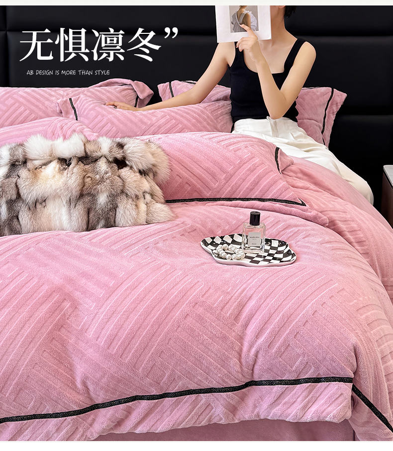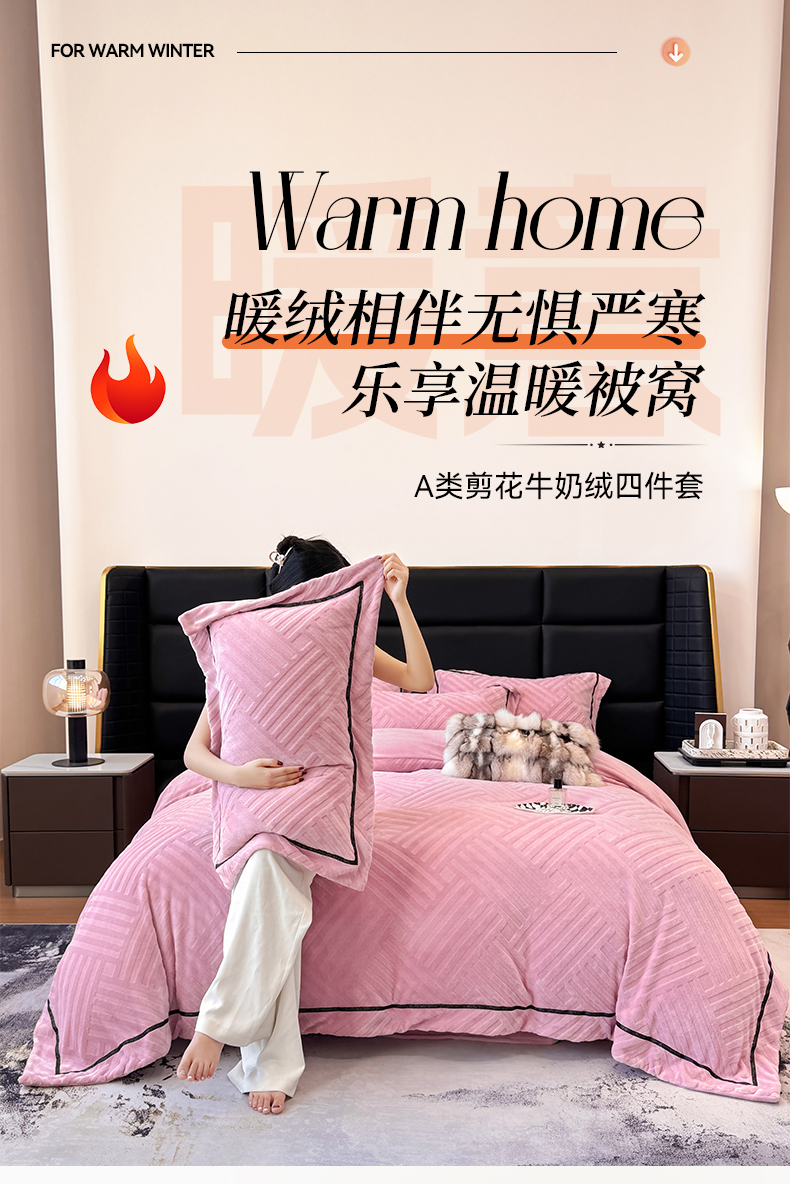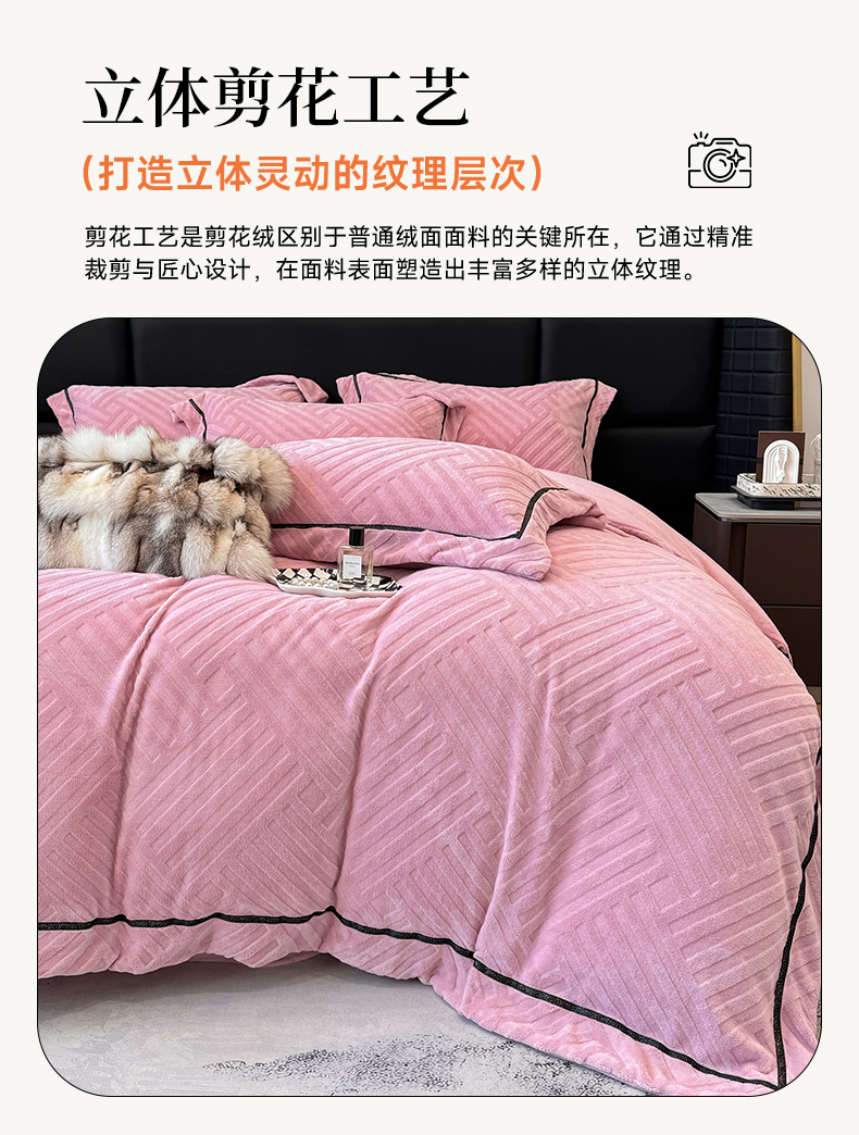 家居1号家纺 2025新款230克全消光牛奶绒剪花四件套-暖意 暖意-豆沙
