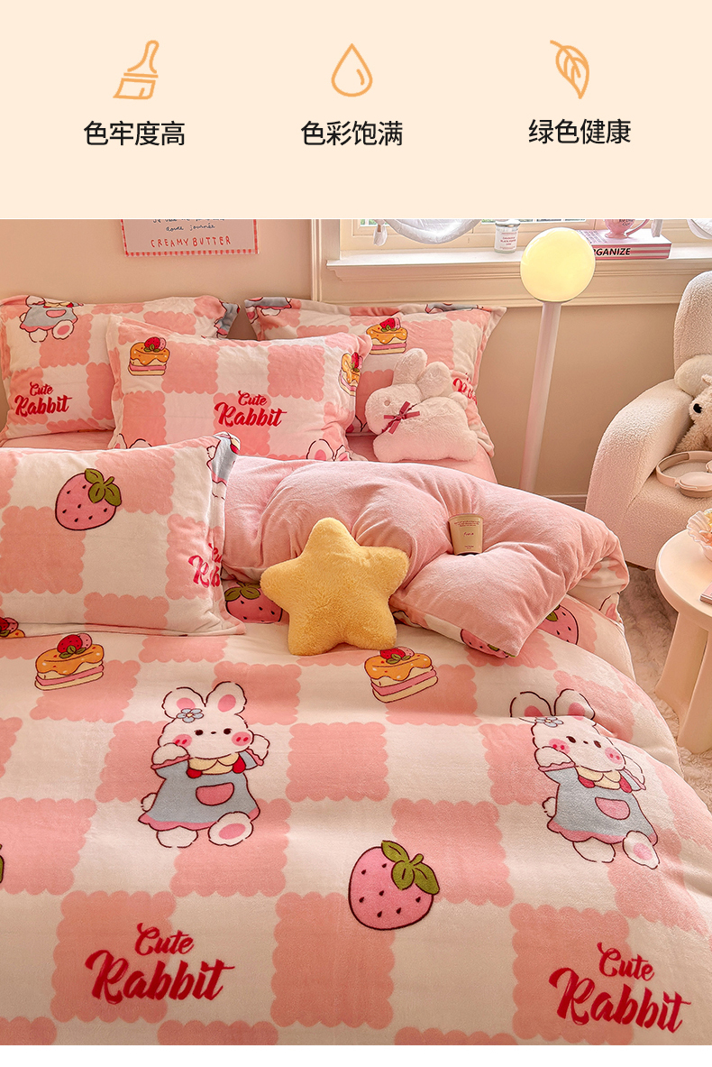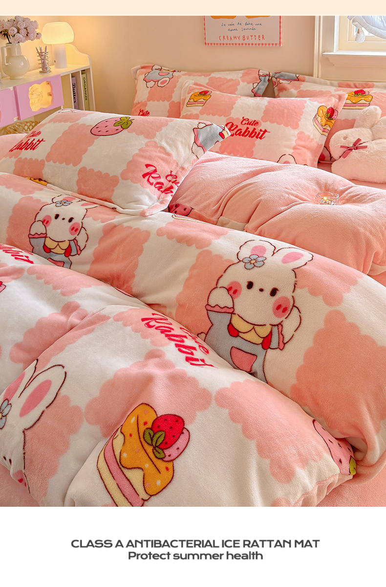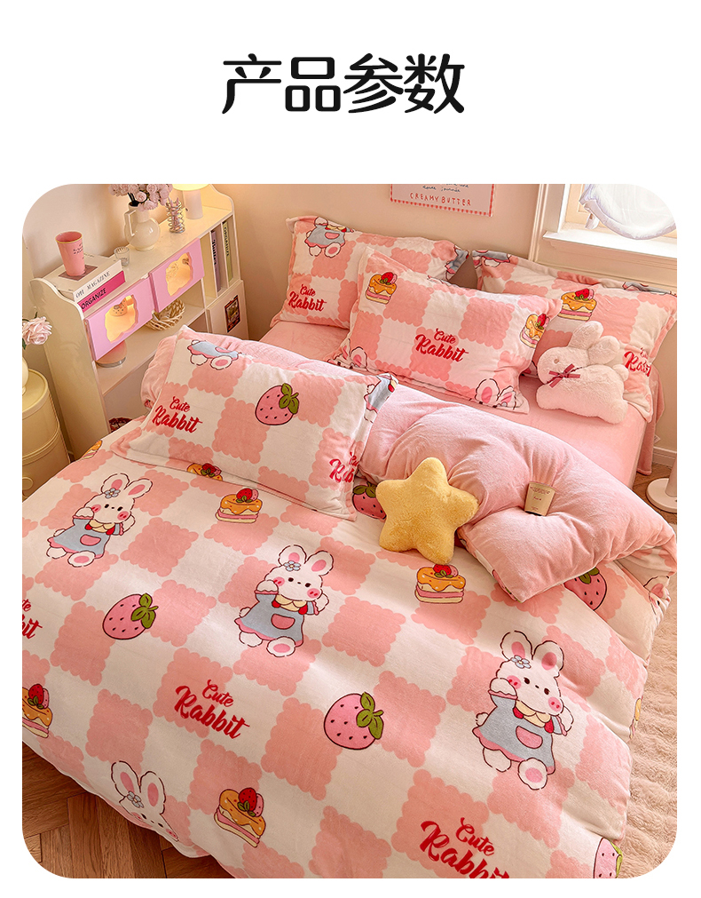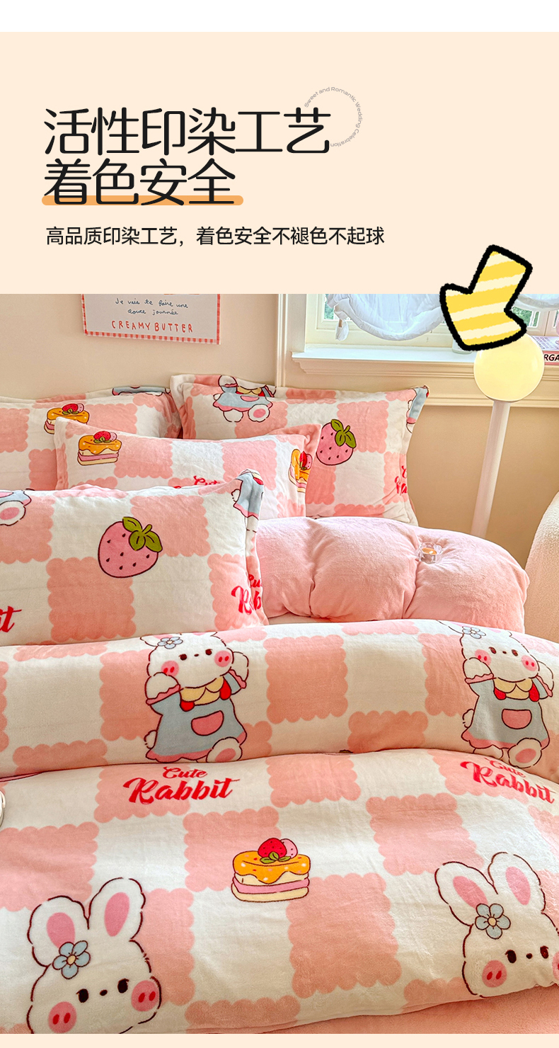 • 91家纺网 家纺一手货源 找家纺 名兮家居 2025秋冬新款加厚高克重牛奶绒单被套 格子兔