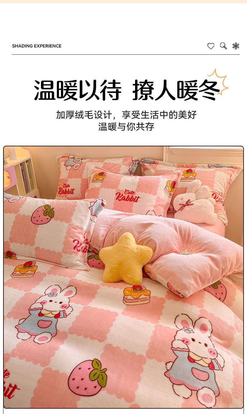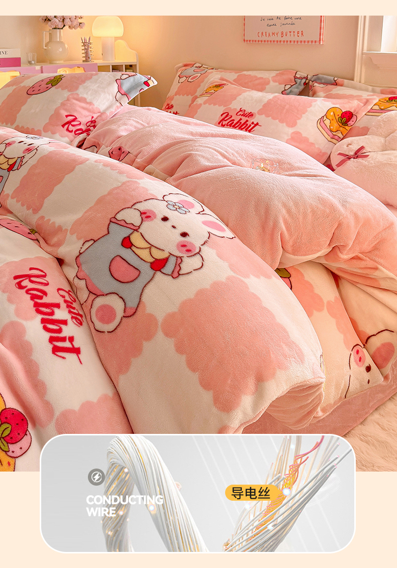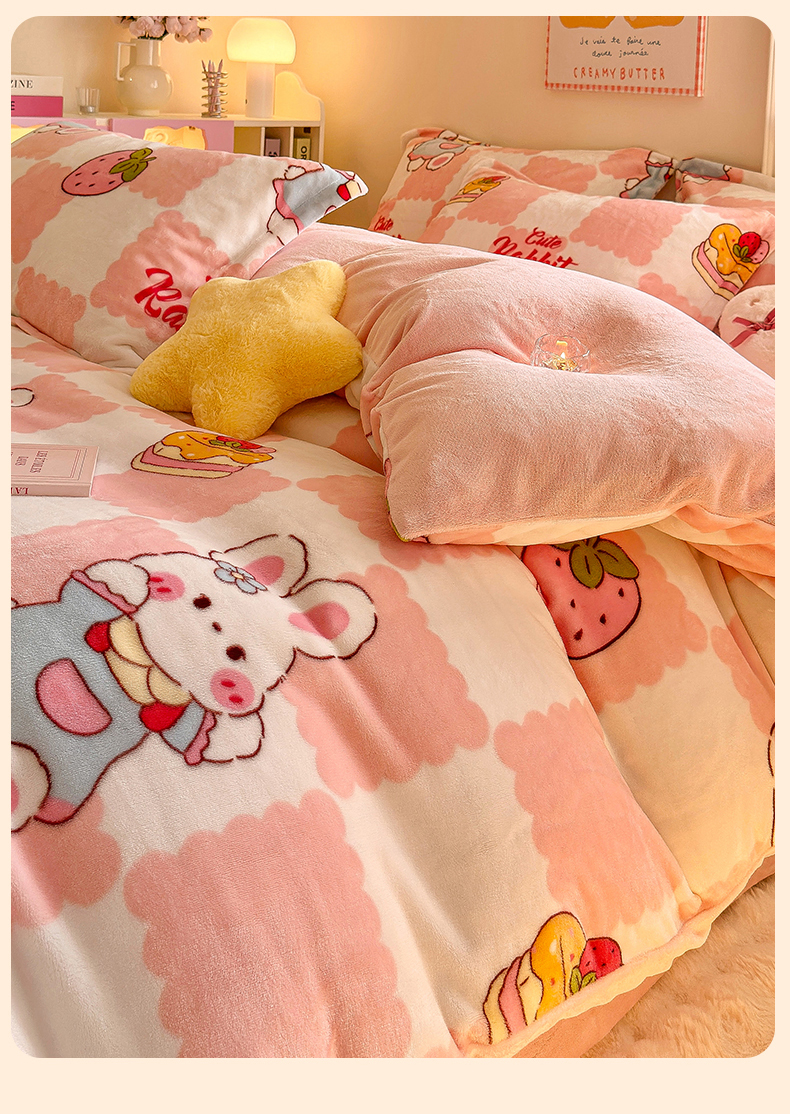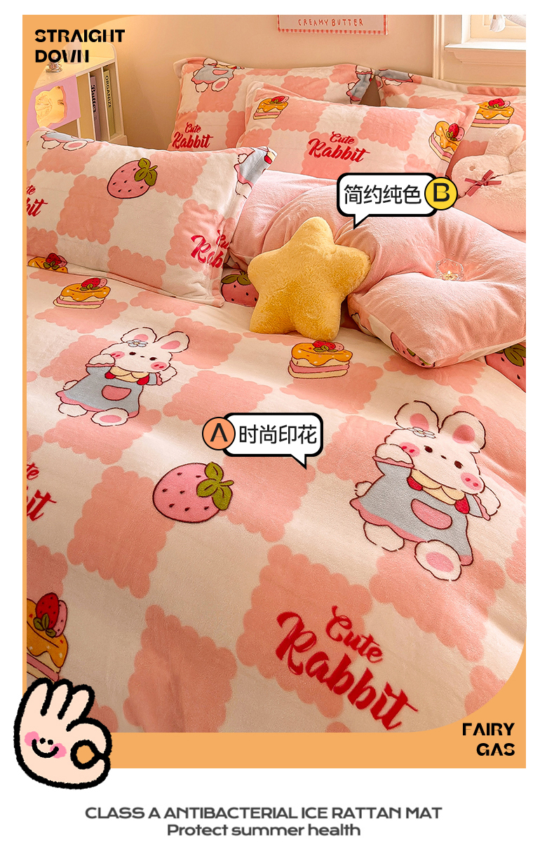 • 91家纺网 家纺一手货源 找家纺 名兮家居 2025秋冬新款加厚高克重牛奶绒单被套 格子兔