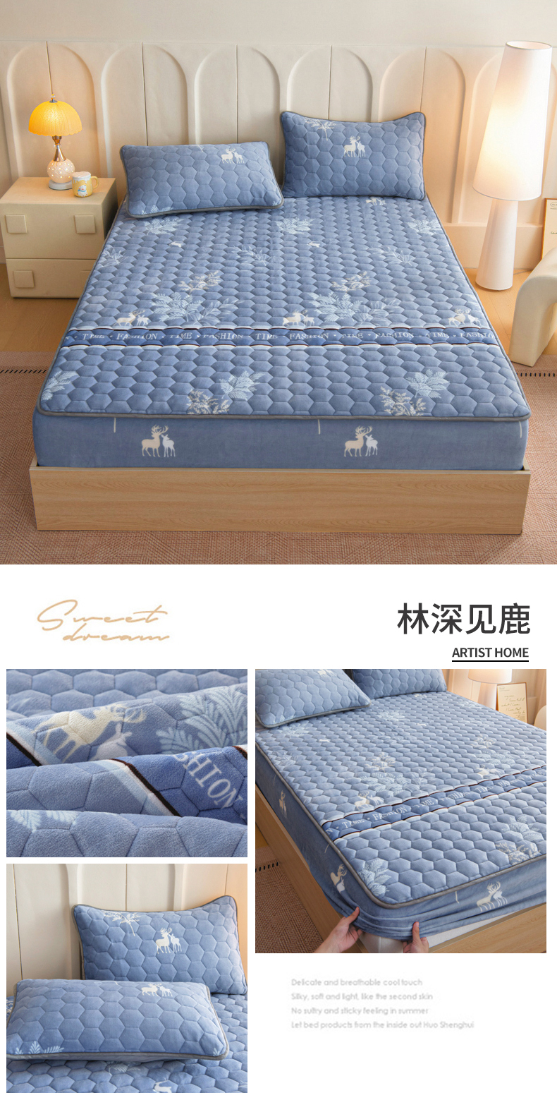 (总)情煊家纺 2025新款保暖牛奶绒夹棉床笠-花边款,一鹿幸福,爱心小熊,豹纹,大力熊,蝶恋,红玫瑰,林深见鹿,秘境,蘑菇小兔,童趣,童真,西高地,银杏叶,紫爱心,三生有杏,蓝大格,大牌风范,太空漫步,乐拼字母,莓果熊