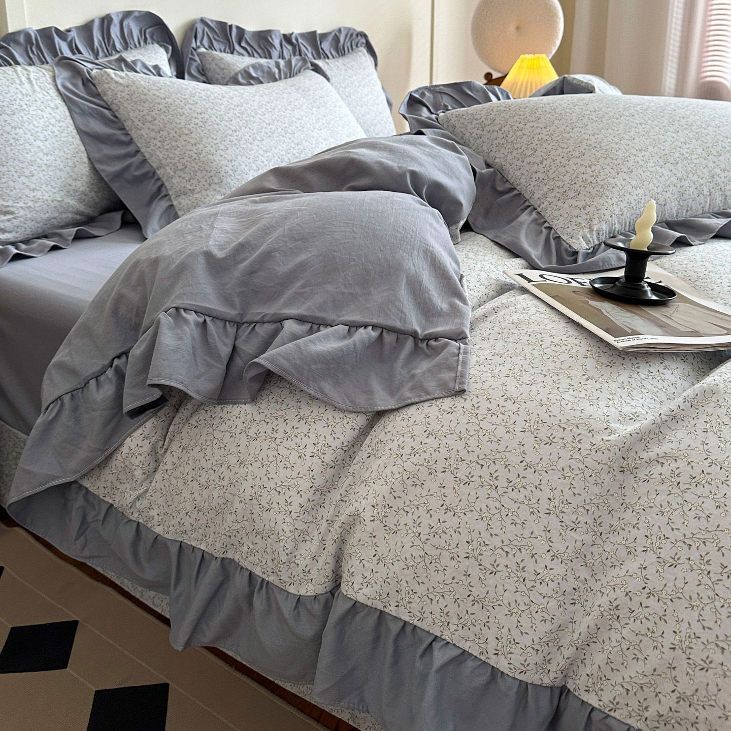 梦莱斯 2025新款高克重云感棉四件套-花边款 灰调花笺