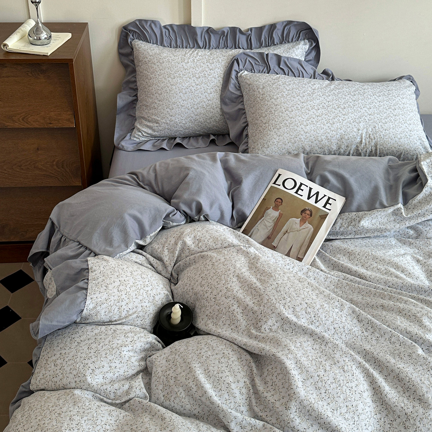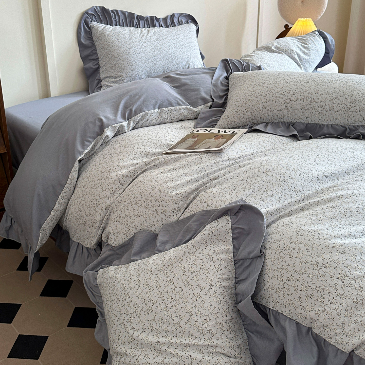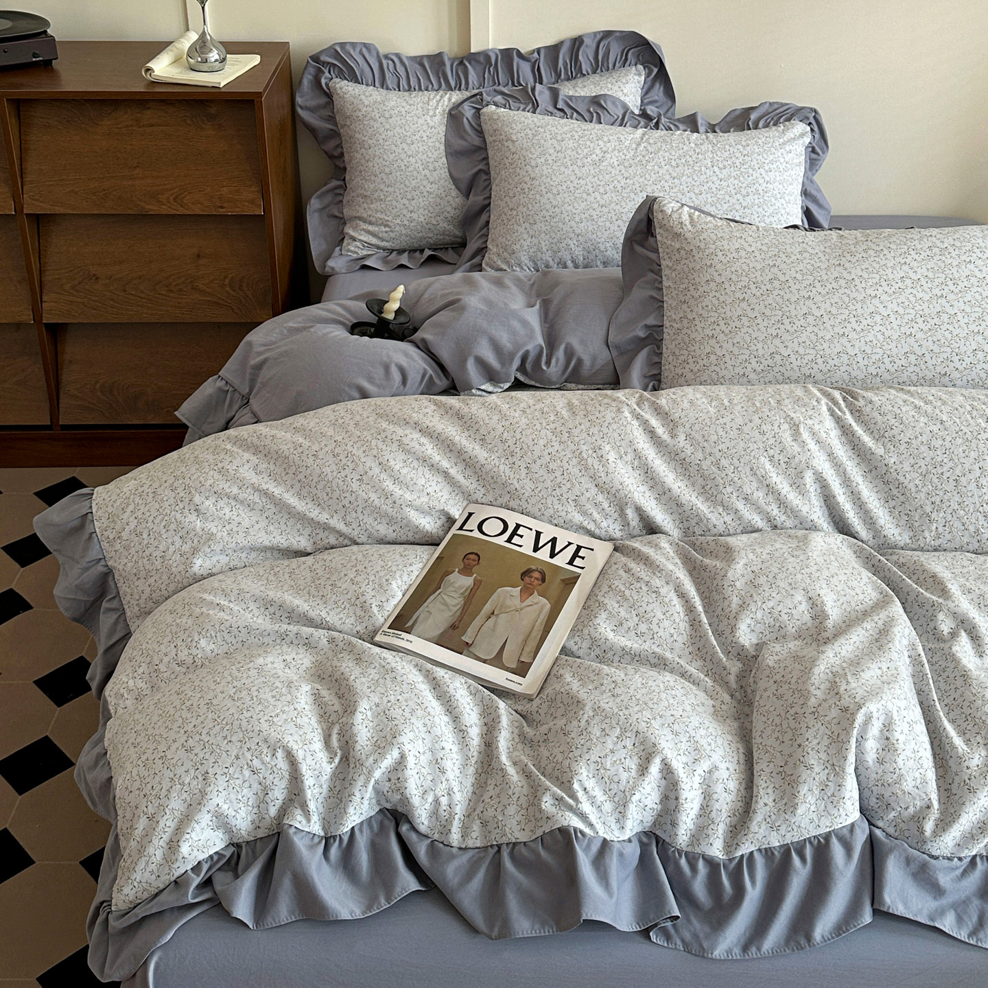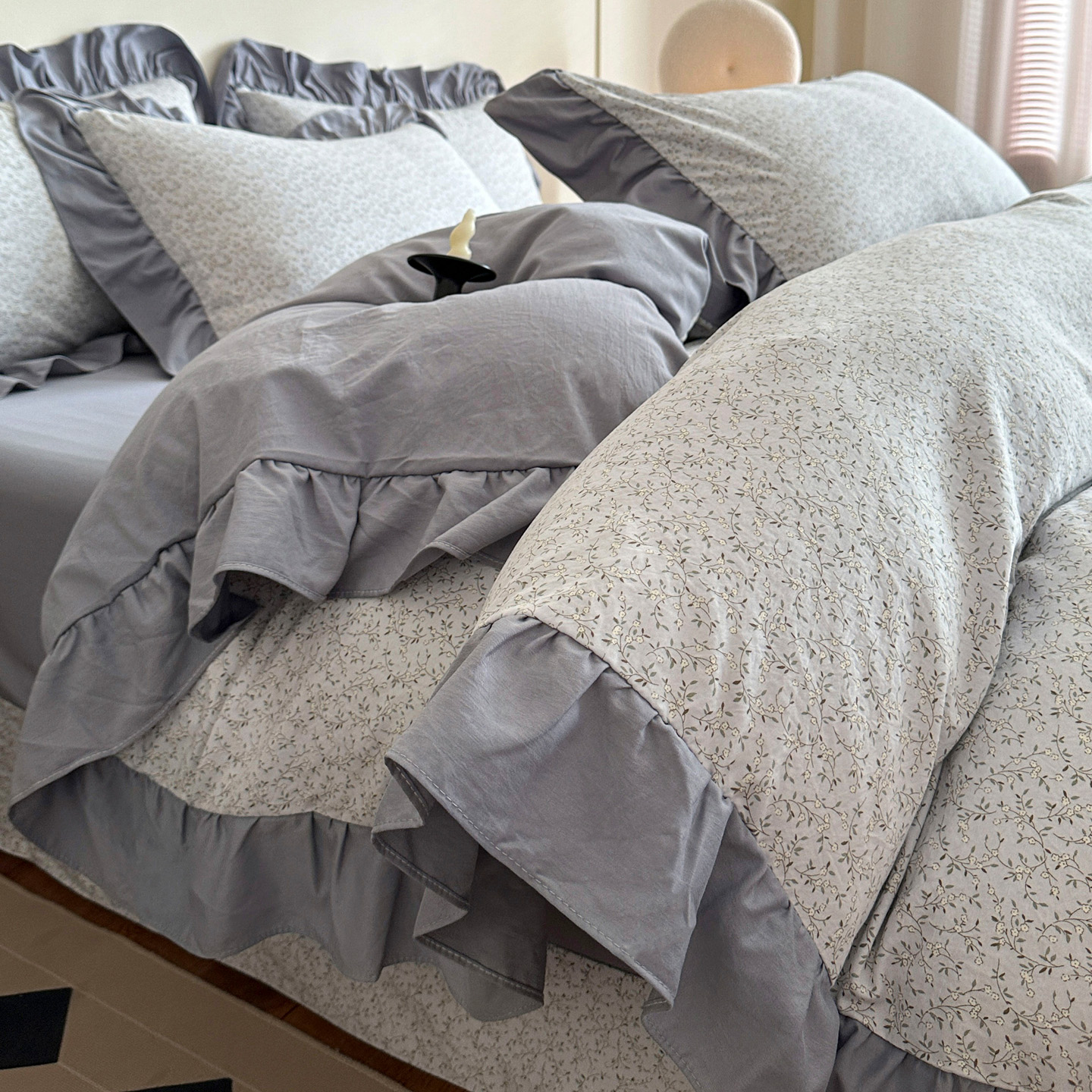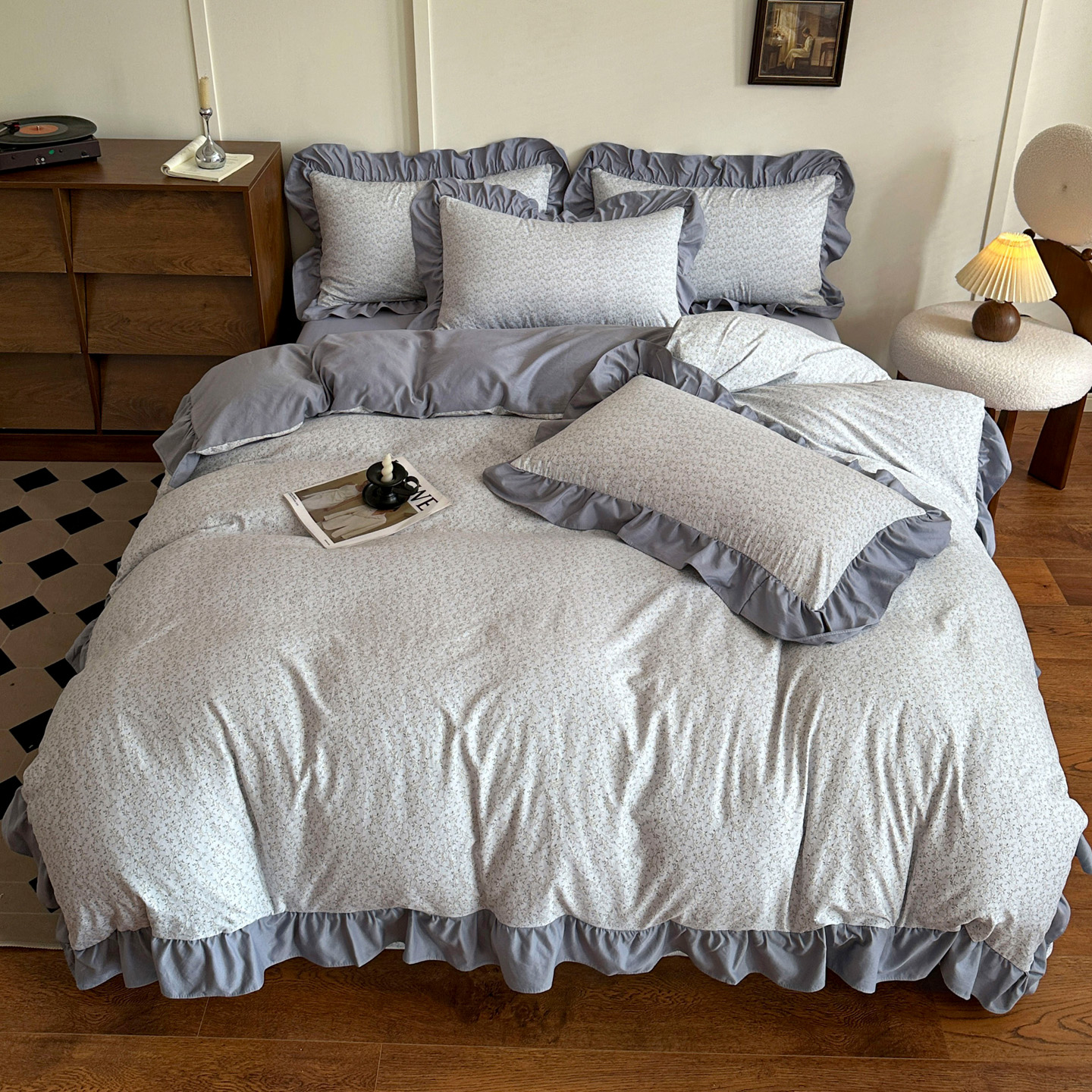 商品名称:梦莱斯 2025新款高克重云感棉四件套-花边款 灰调花笺
