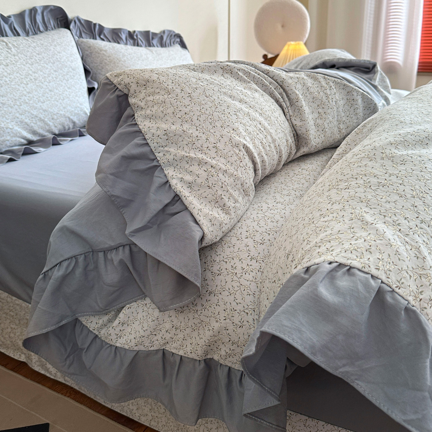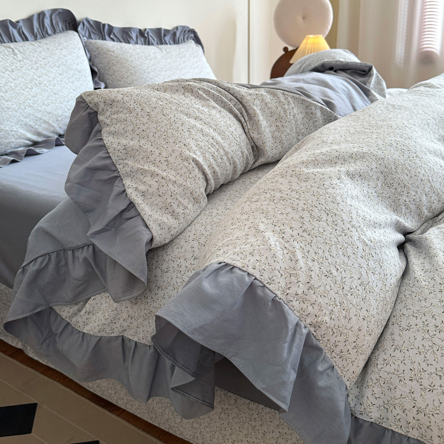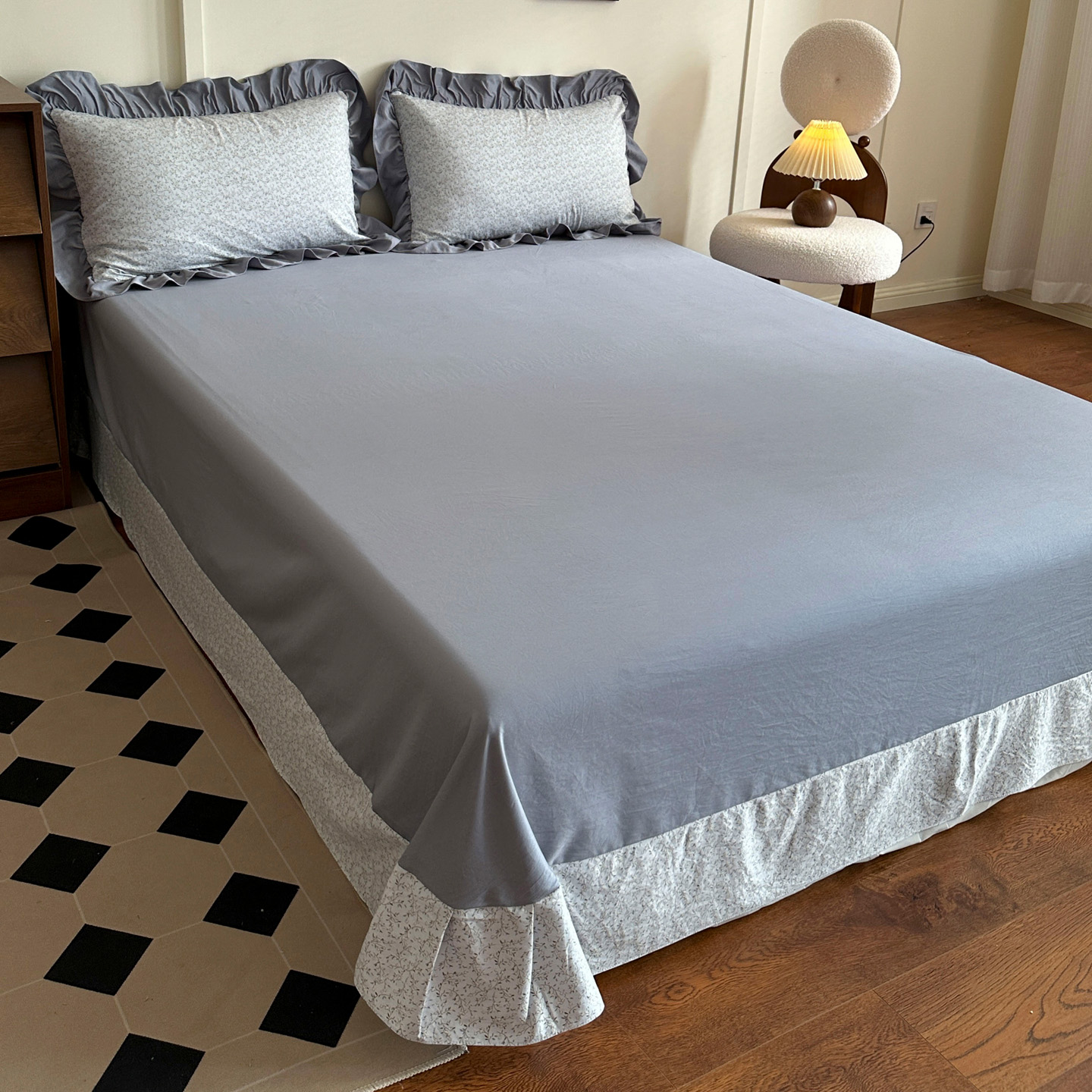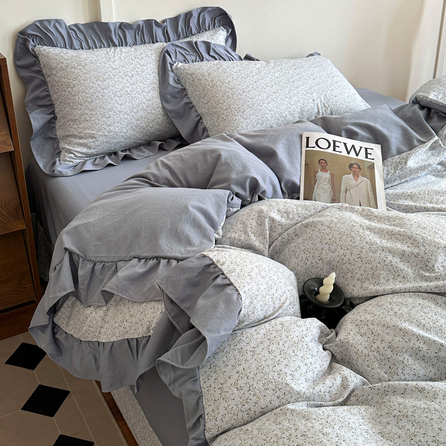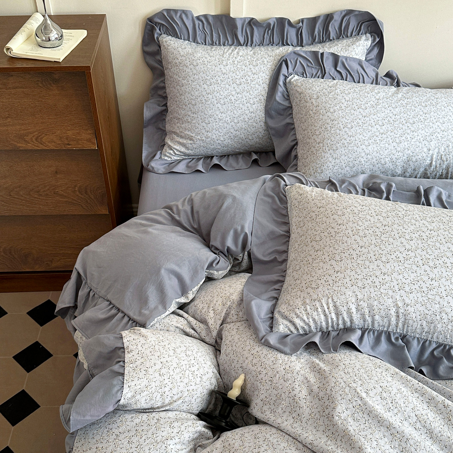 商品名称:梦莱斯 2025新款高克重云感棉四件套-花边款 灰调花笺