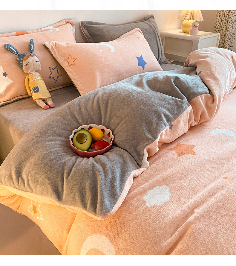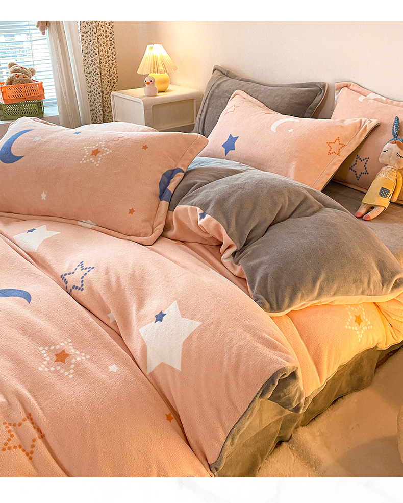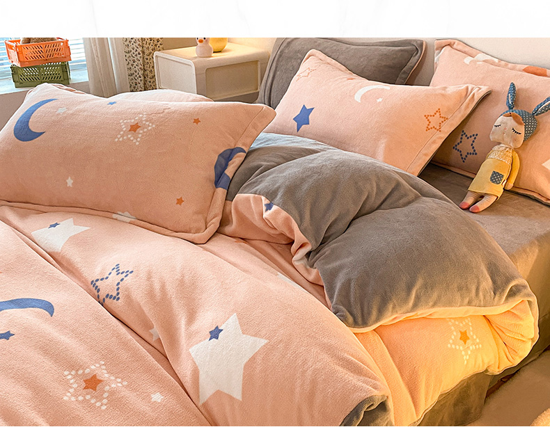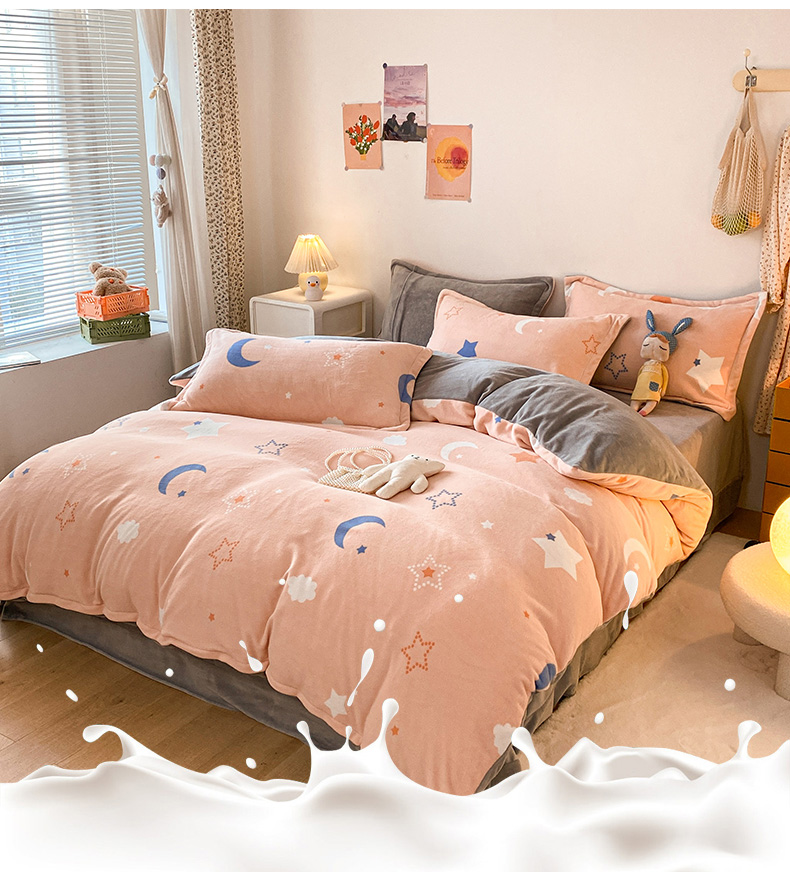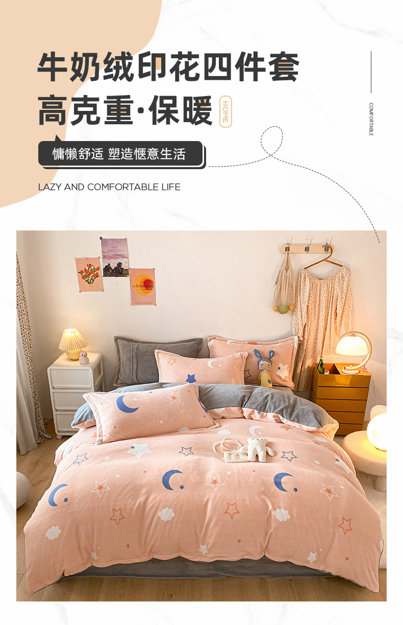 当前位置: 91家纺网 > 商品网购 > 床品套件 > 四件套 > 牛奶绒四件套 > 金盛纺 2025新款高克重牛奶绒印花系列四件套(可定制) 梦幻星空(粉)