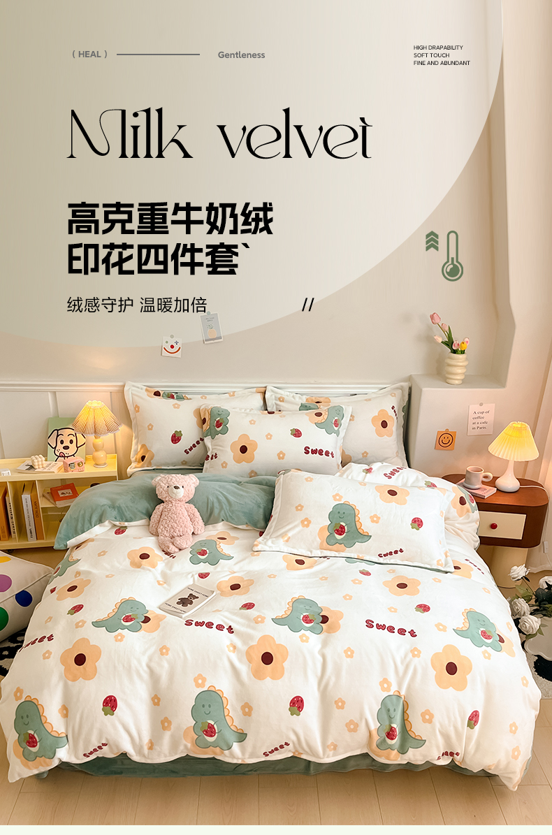 当前位置: 91家纺网 > 商品网购 > 床品套件 > 四件套 > 牛奶绒四件套 > 金盛纺 2025新款高克重牛奶绒印花系列四件套(可定制) 萌萌哒