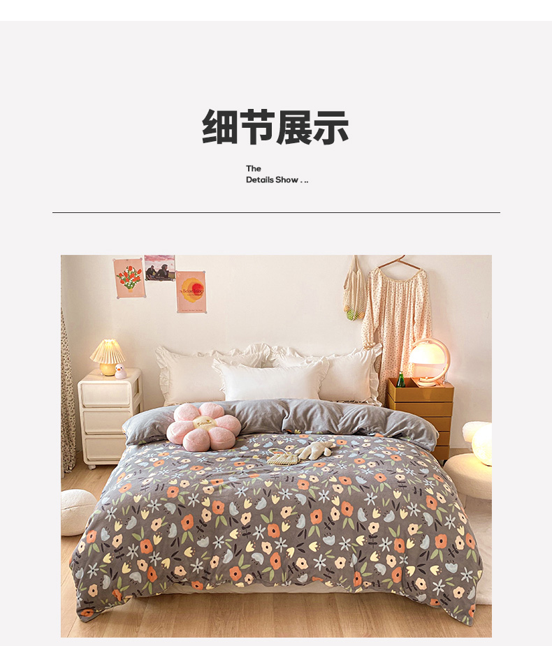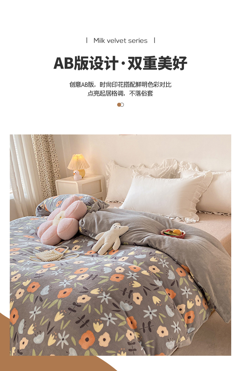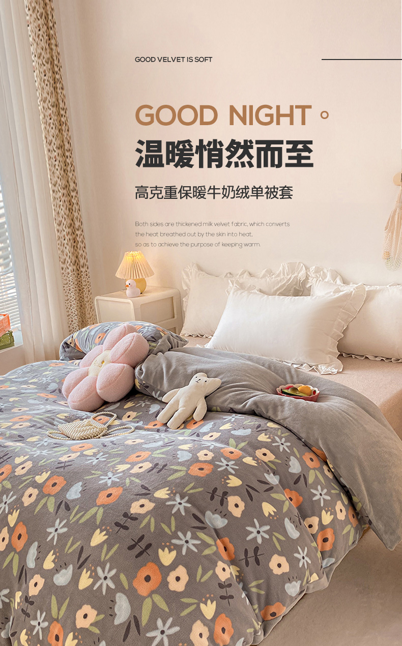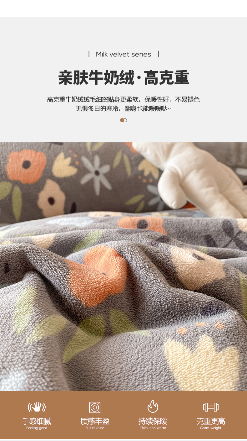 • 91家纺网 家纺一手货源 找家纺 金盛纺 2025新款高克重牛奶绒印花系列单被套(可定制) 繁花(灰)