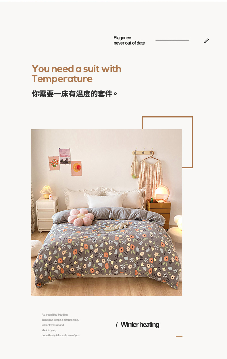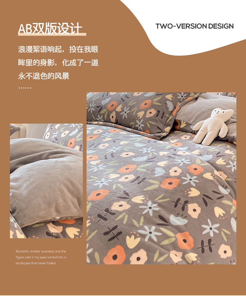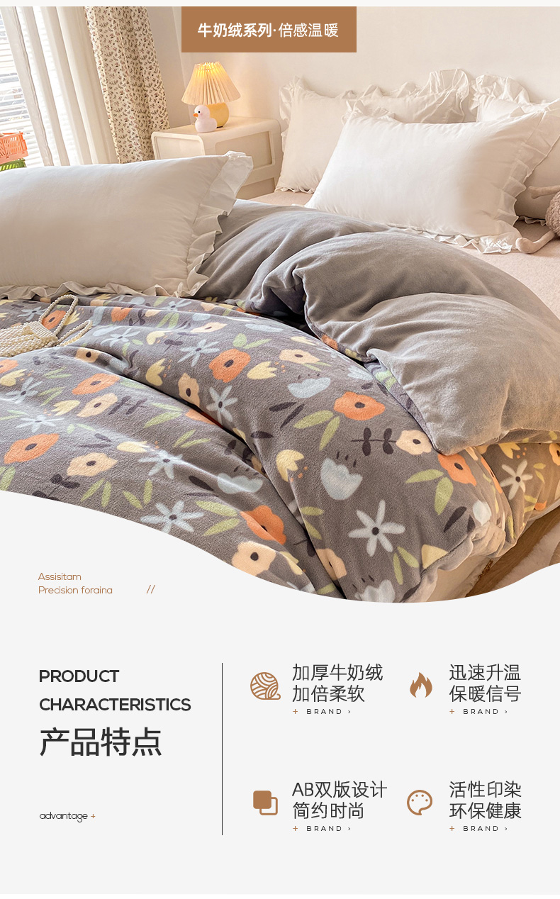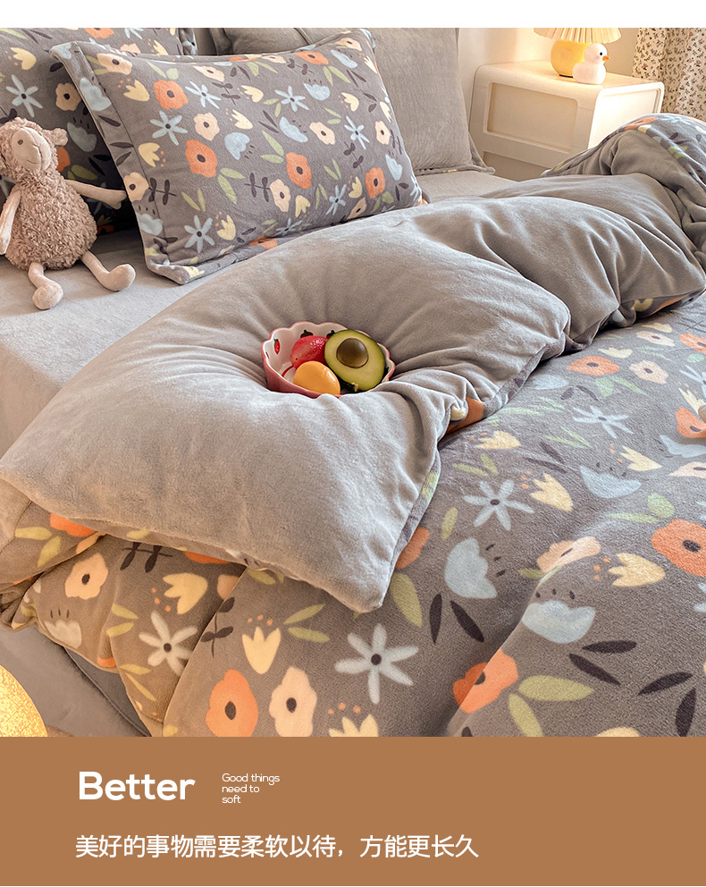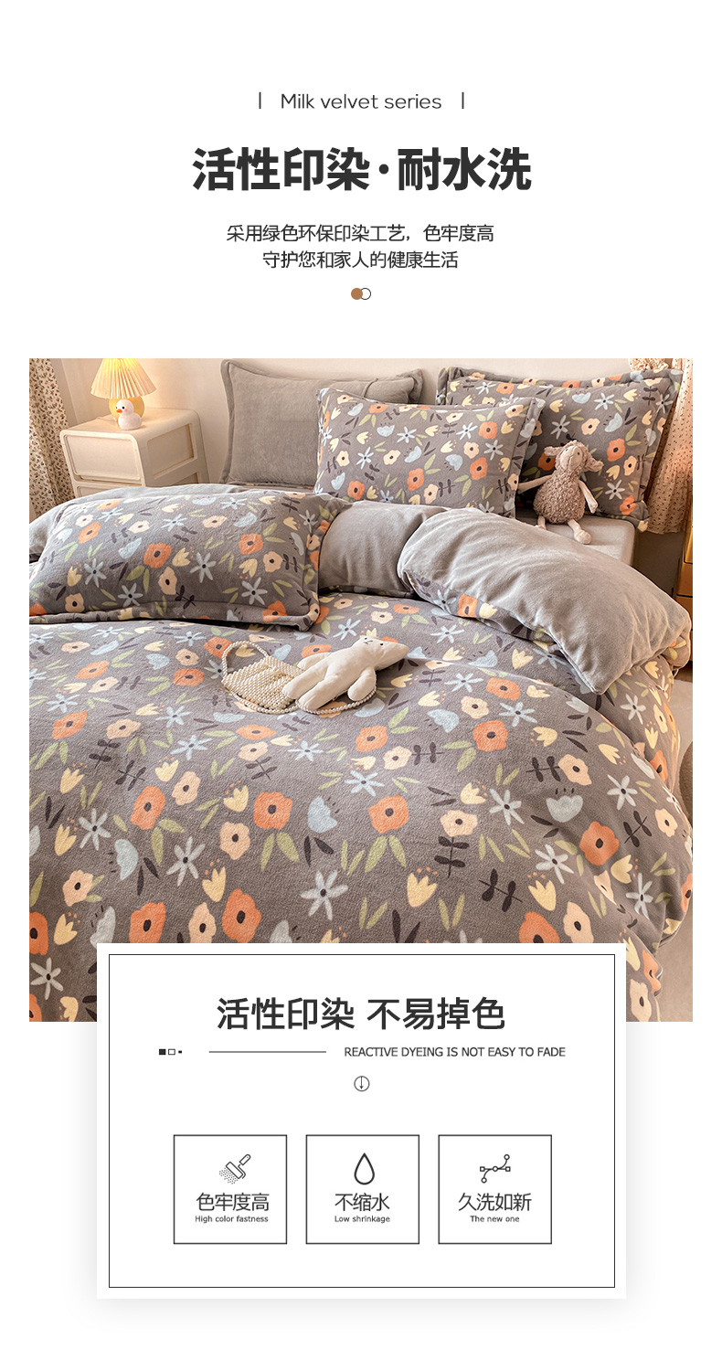 • 91家纺网 家纺一手货源 找家纺 金盛纺 2025新款高克重牛奶绒印花系列单被套(可定制) 繁花(灰)