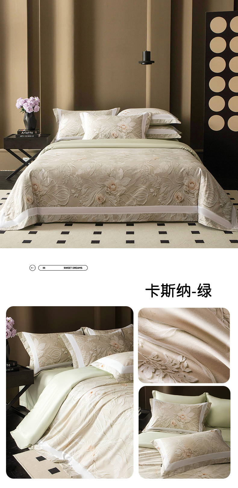 (总)洺兰家居 2026年新疆长绒棉100支秋冬款轻磨毛加厚保暖工艺款四件套床上用品,路易斯-米,千屿-曼卡粉,一见倾心-米,羽纱-卡其,织梦-粉,栀子花开-绿