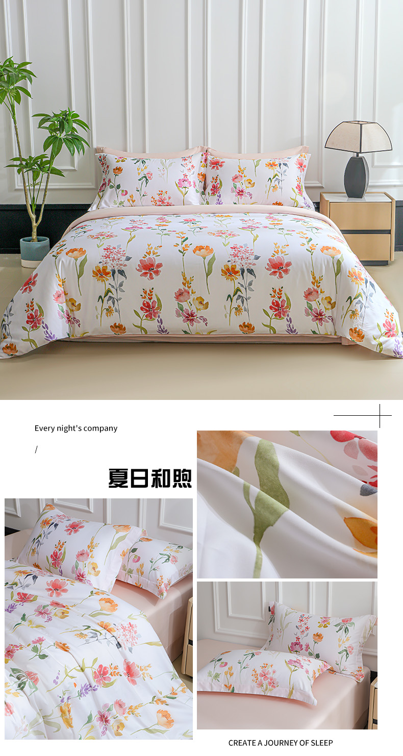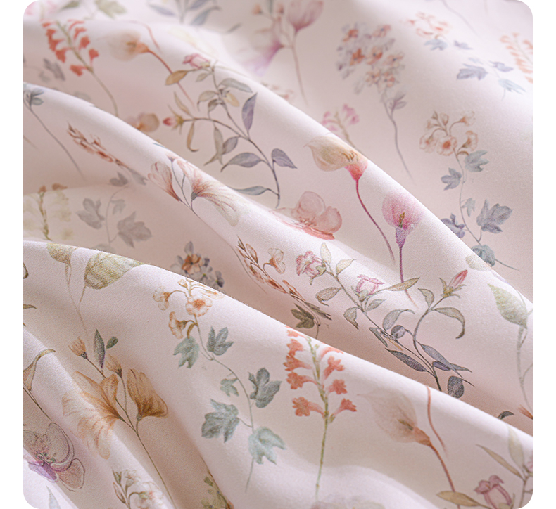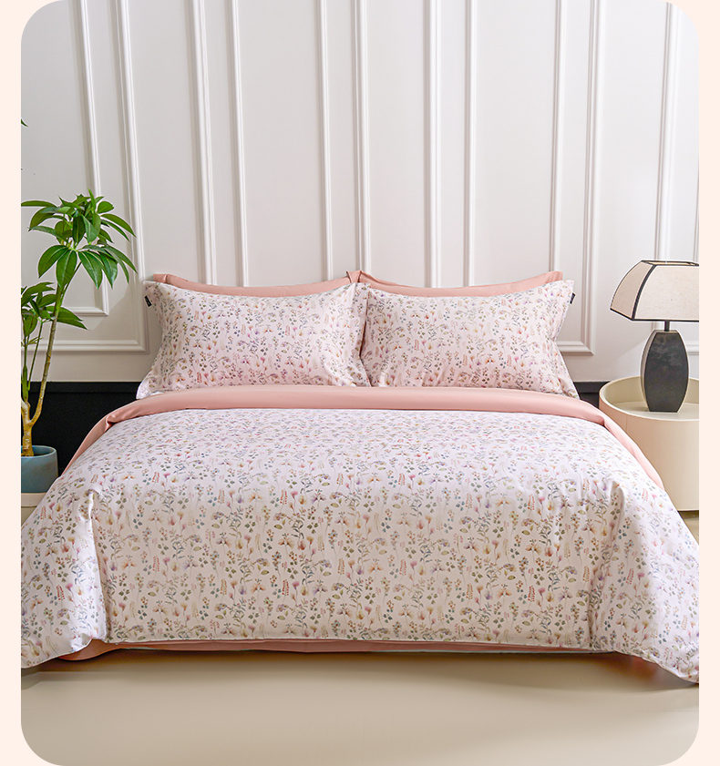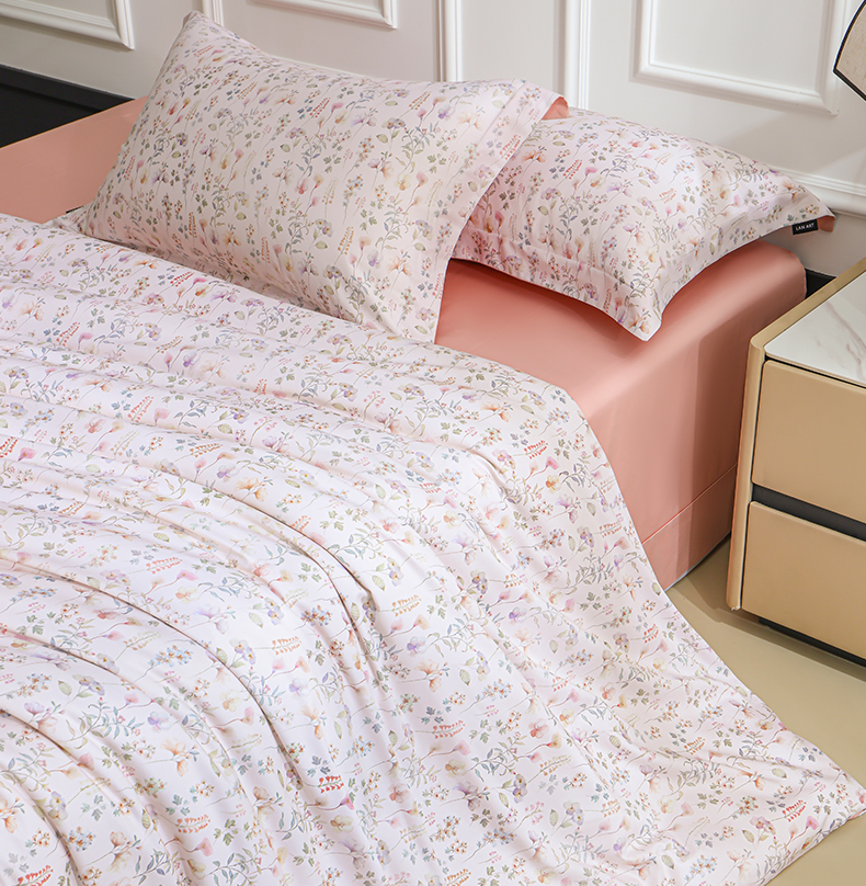 商品名称:洺兰家居 2025新款100支全棉新疆棉数码印花四件套长绒棉贴边床单床笠床上用品套件-专版(控价标准235加大255床笠245) 清漾 粉