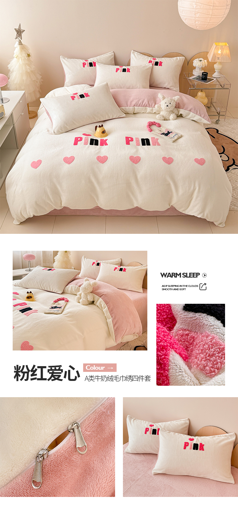 (总)懒猫家纺 2025新款亲肤舒适牛奶绒四件套-可可小姐系列,可可小姐-瓷白,可可小姐-水粉