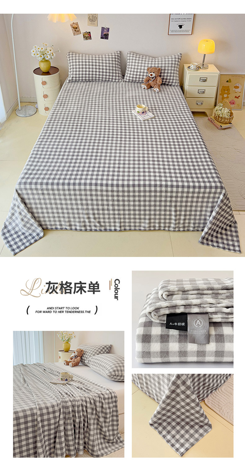 芷凡家纺 2025新款A类牛奶绒纯色条纹格子床单 牛奶绒床单-芝士