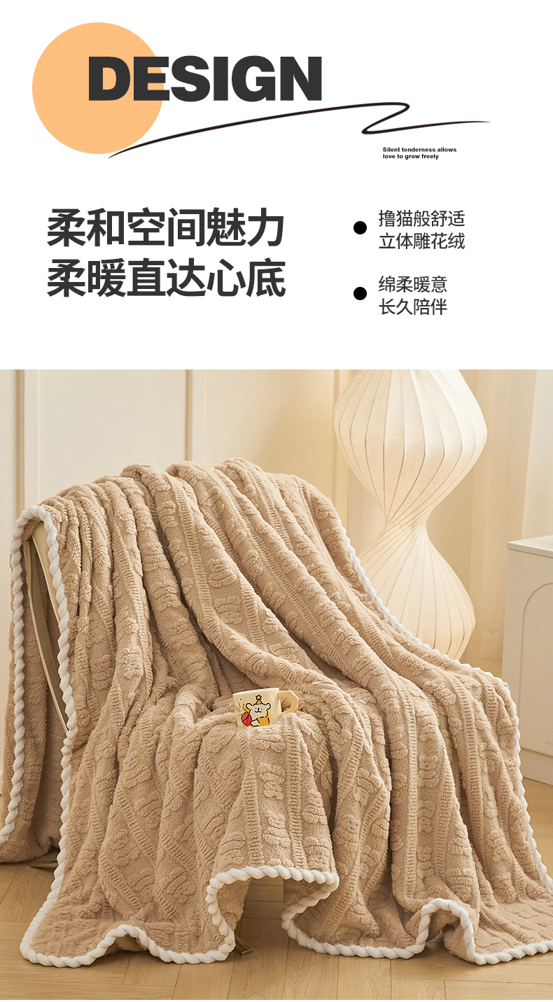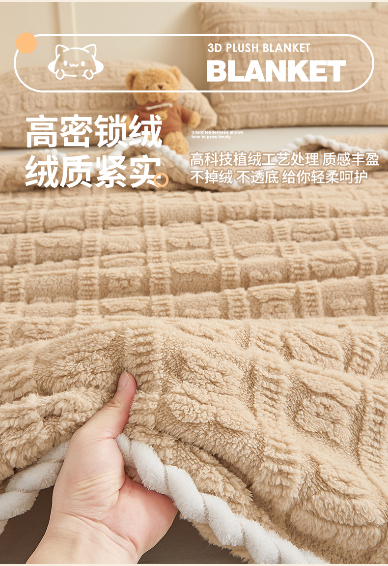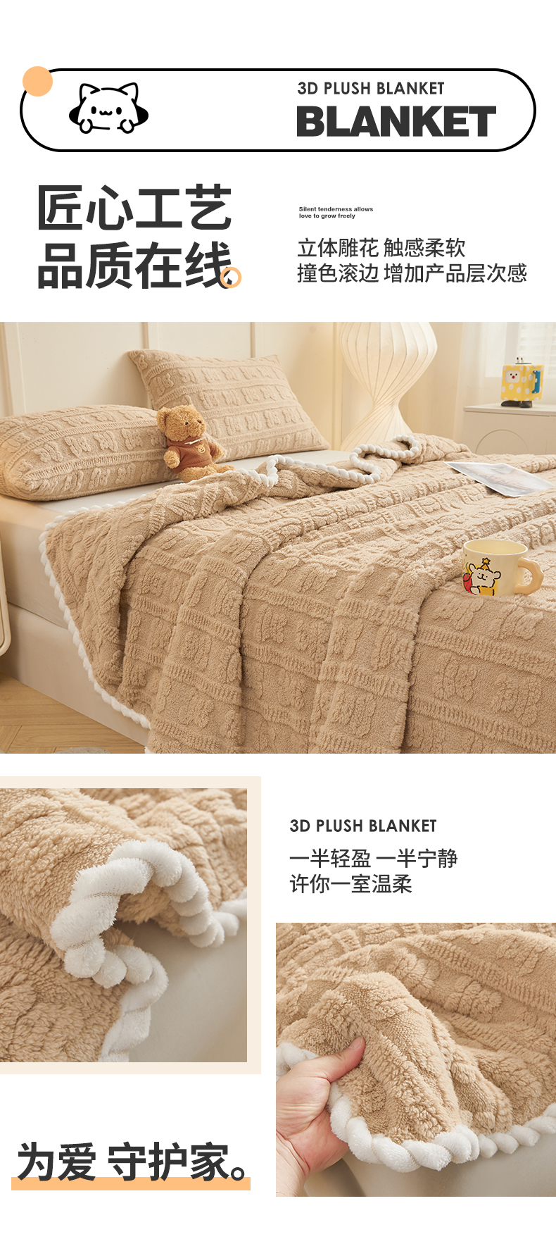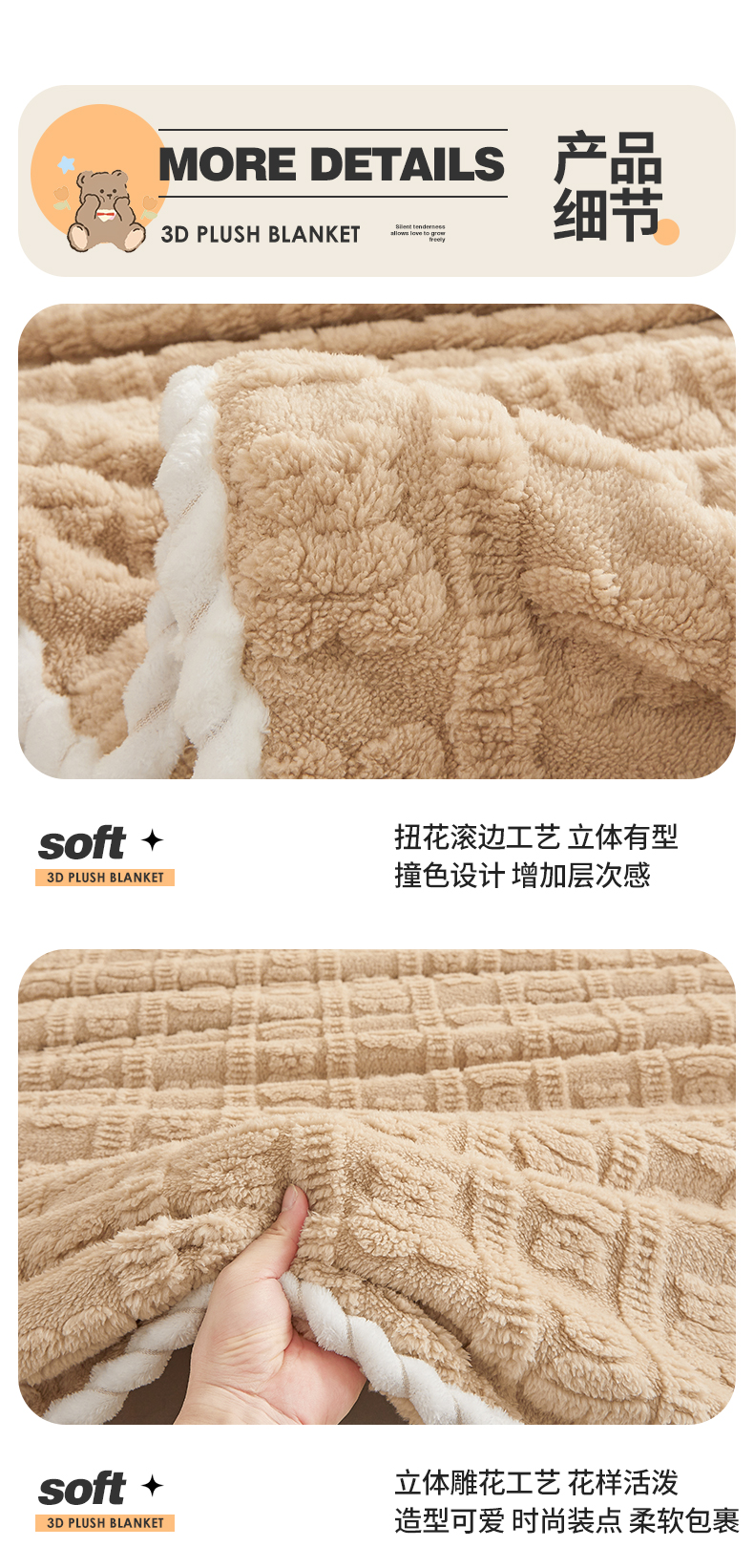 商品名称:世纪绒品 2025新款A类立体牛奶绒雕花绒单层毛毯毯子-多宝熊 多宝熊 卡其