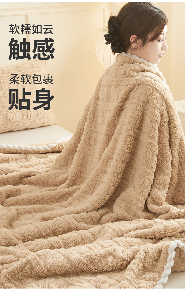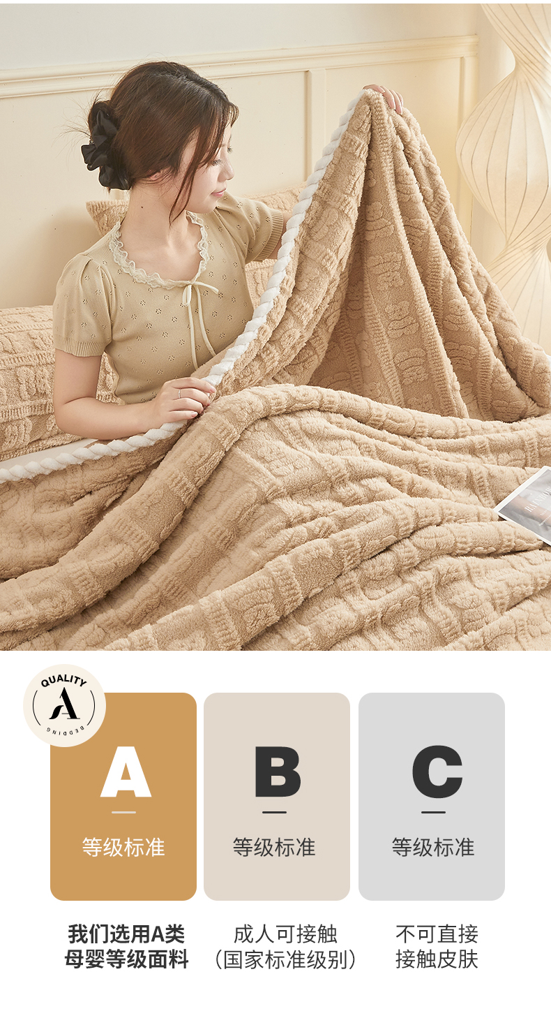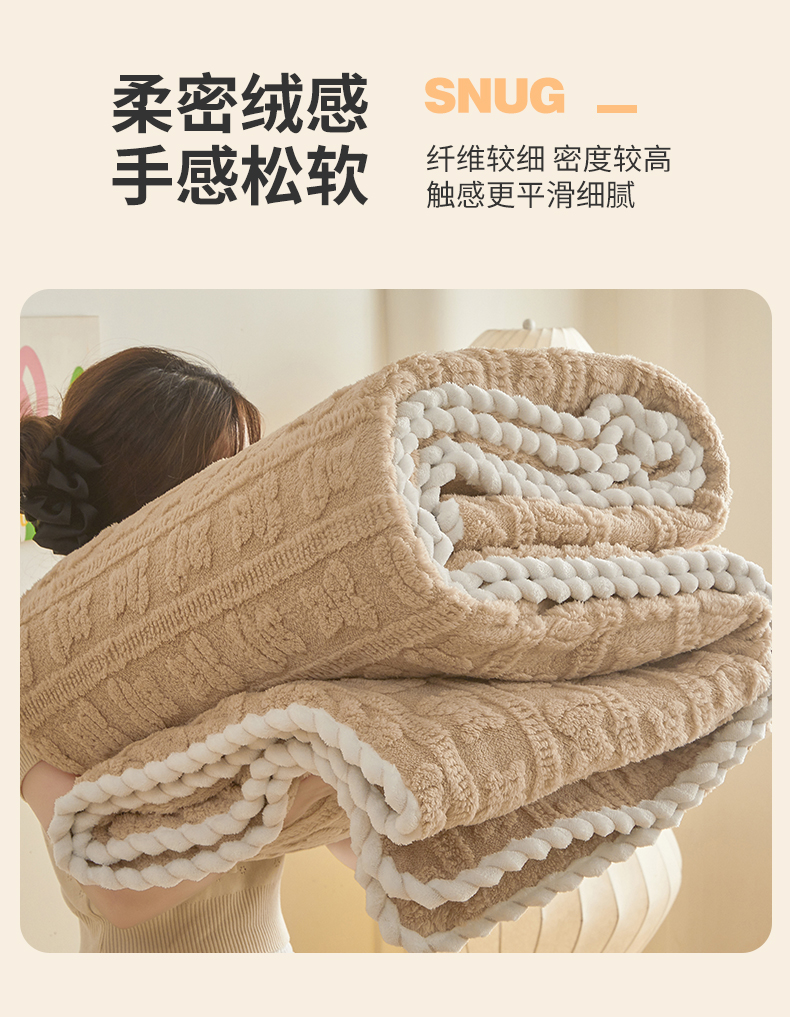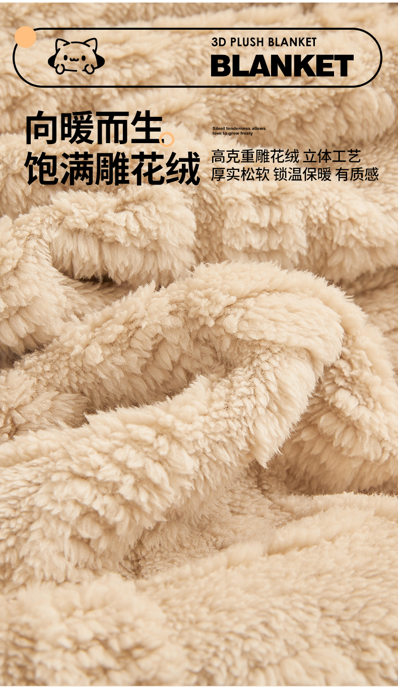 商品名称:世纪绒品 2025新款A类立体牛奶绒雕花绒单层毛毯毯子-多宝熊 多宝熊 卡其