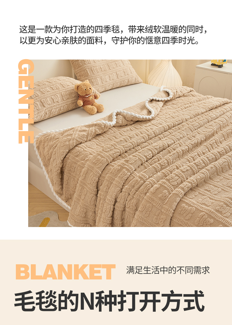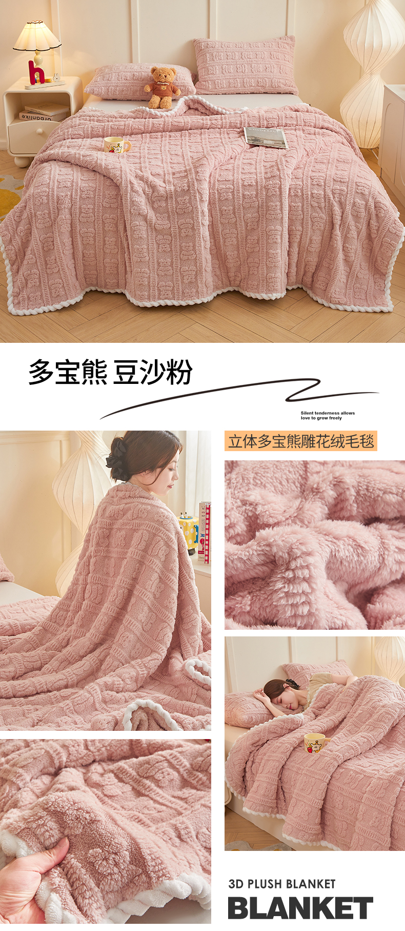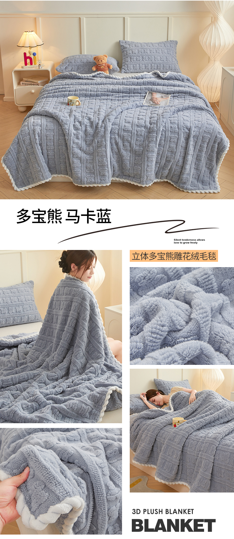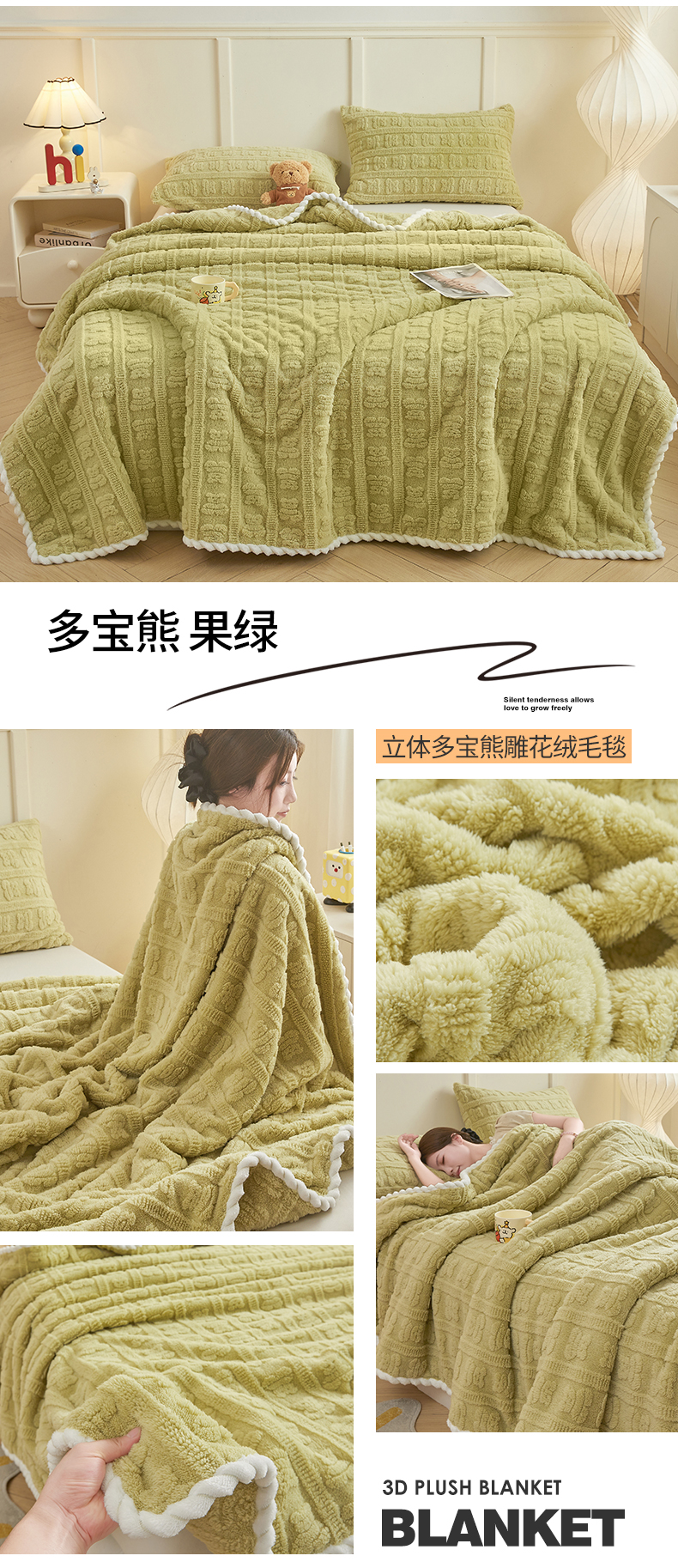 (总)世纪绒品 2025新款A类立体牛奶绒雕花绒单层毛毯毯子-多宝熊,多宝熊 马卡蓝,多宝熊 果绿,多宝熊 月牙白,多宝熊 太空灰,多宝熊 卡其,多宝熊 豆沙粉