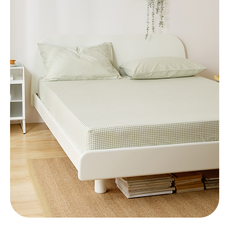 EH家居 2025新款全棉小清新印花单床笠-织光系列 青色小格