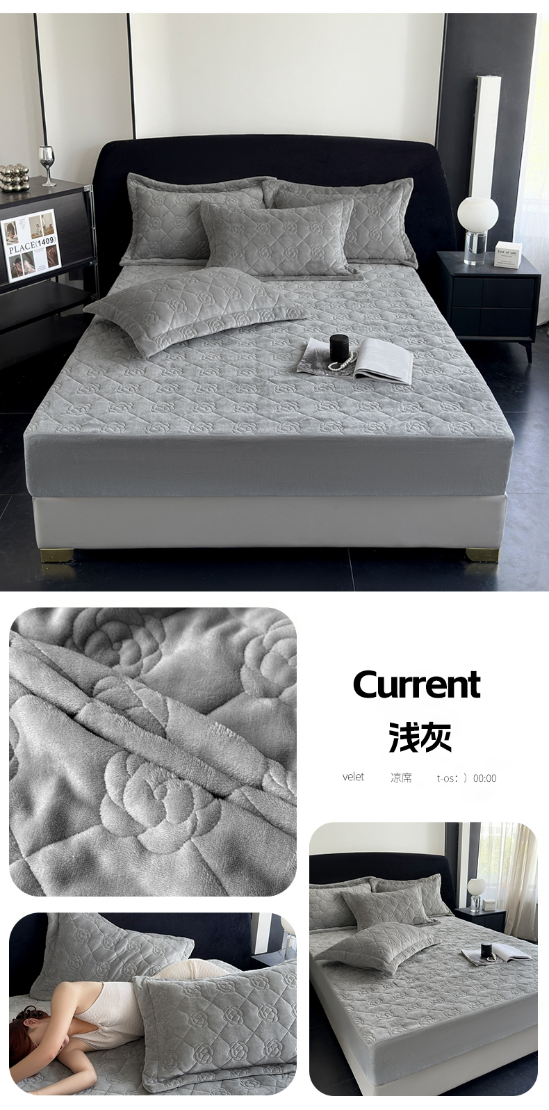 商品名称:7V 2025新款牛奶绒床笠 浅灰