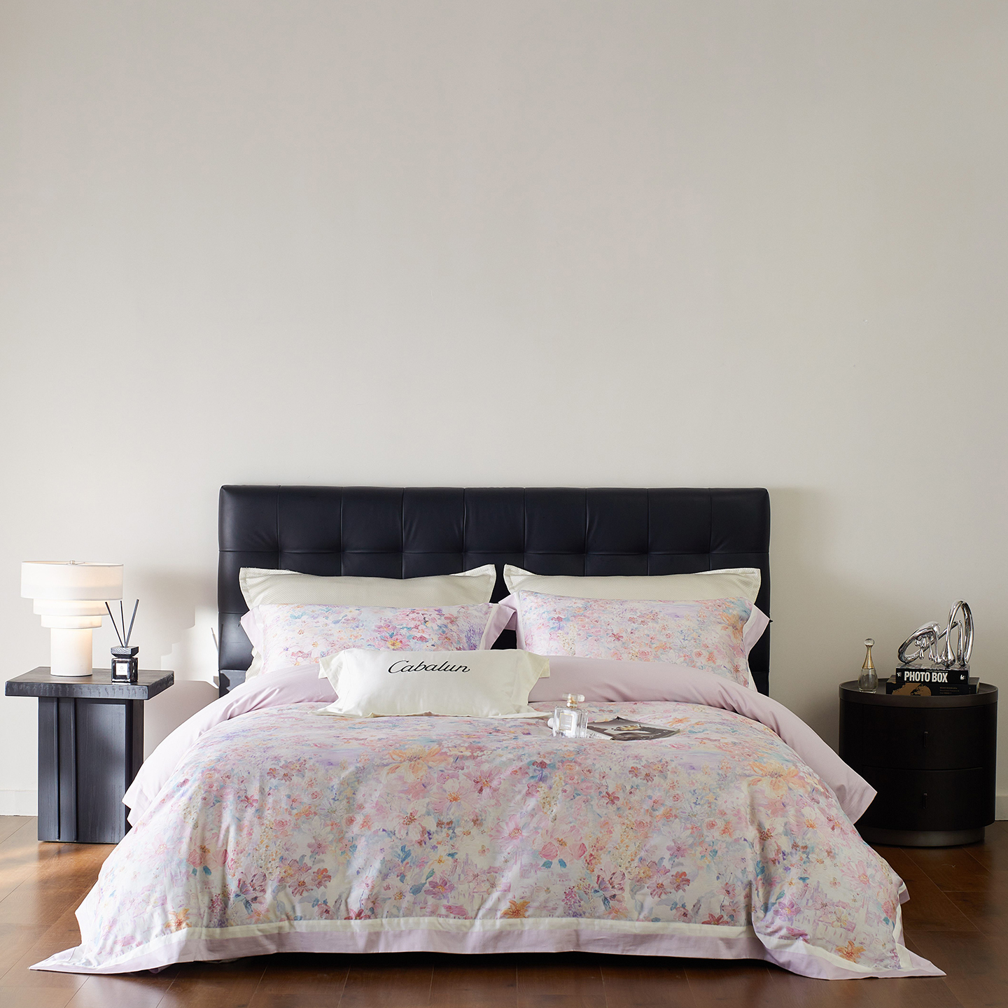 (总)卡巴伦2025新款60兰精天丝夏被四件套,晨露花园粉,晨露花园蓝