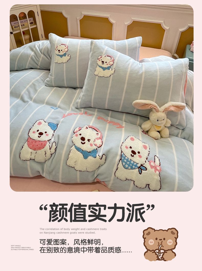 (总)优迈 2025秋冬新款卡通牛奶绒泡泡绒印花花卉兔毛四件套,爱心泡泡-咖,爱心泡泡粉,粉色空间,蝴蝶-粉,蝴蝶灰,灰色空间,梦幻星空,蔷薇花,田园生活,熊猫点点-咖,熊猫点点-绿