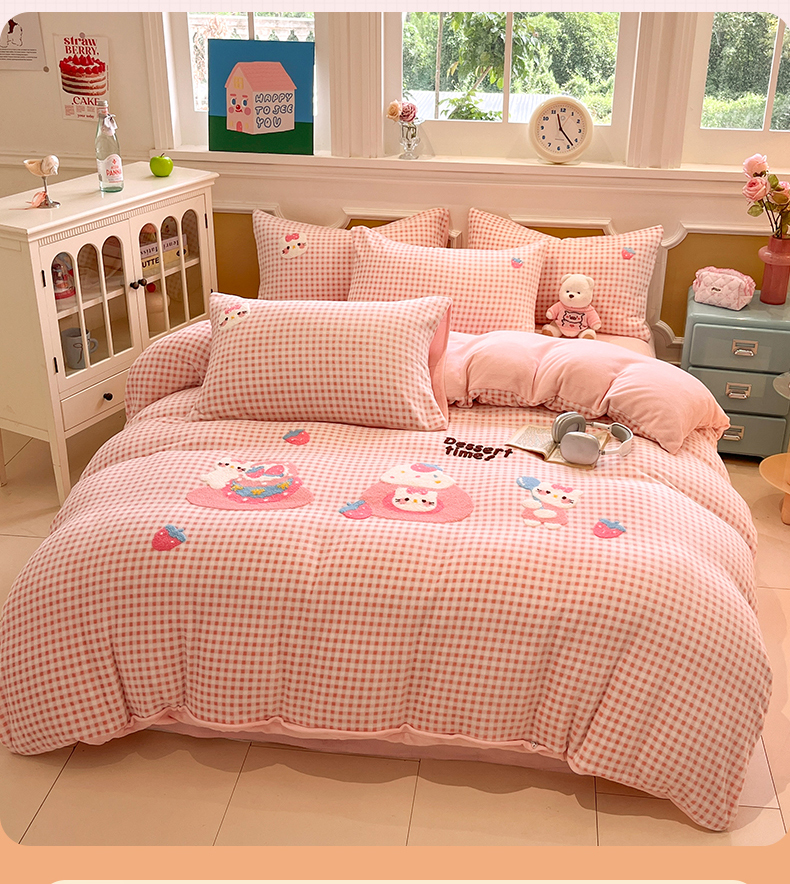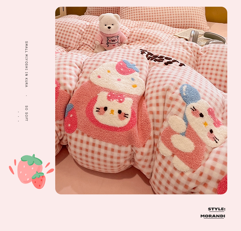 商品名称:优迈 2025新款A类卡通200g牛奶绒毛巾绣四件套 甜心莓果