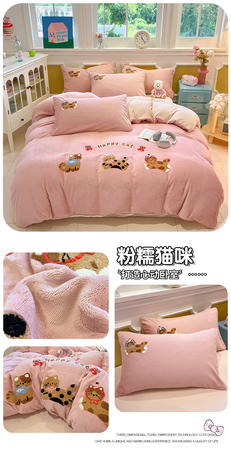 (总)优迈 2025秋冬新款卡通牛奶绒泡泡绒印花花卉兔毛四件套,爱心泡泡-咖,爱心泡泡粉,粉色空间,蝴蝶-粉,蝴蝶灰,灰色空间,梦幻星空,蔷薇花,田园生活,熊猫点点-咖,熊猫点点-绿
