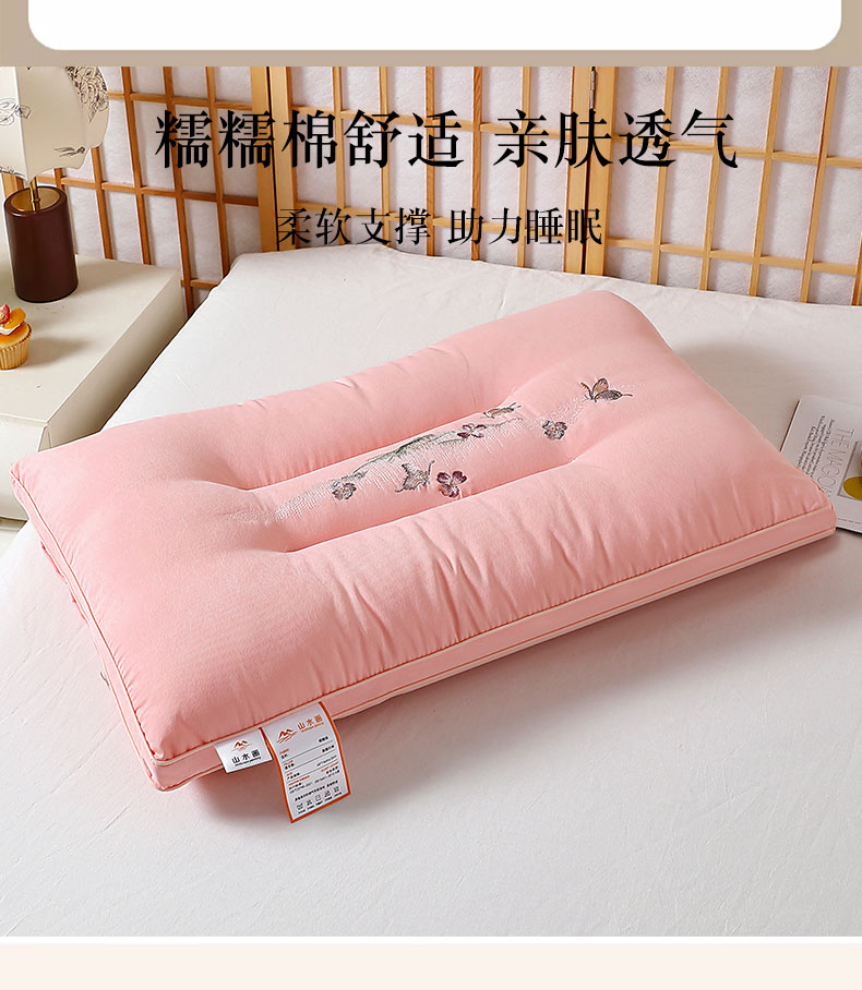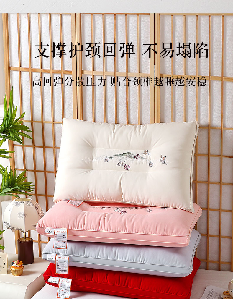 (总)仁宇枕业 2025新款新品 蝴蝶飞飞糯糯棉大红婚庆定型护颈中低枕头枕芯