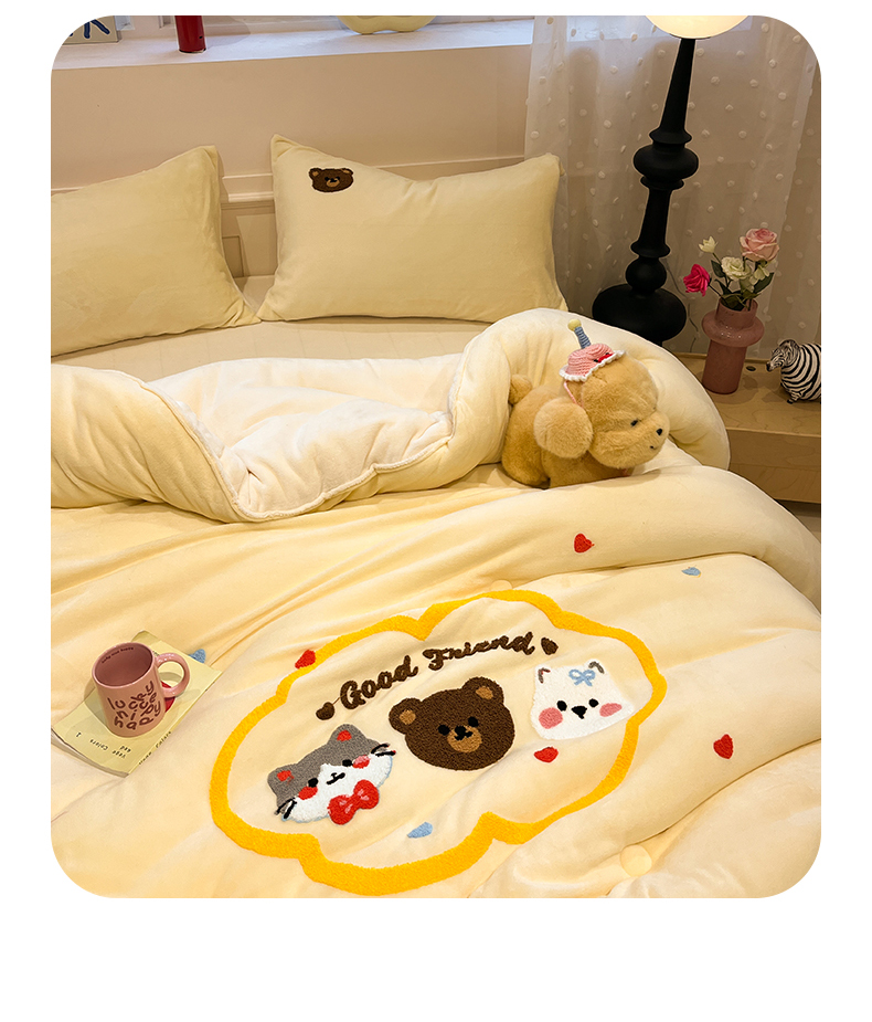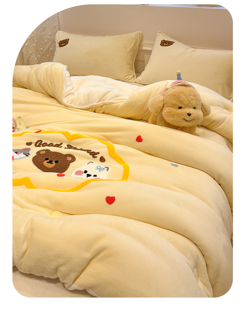 商品名称:优迈 2025新品牛奶绒毛巾绣冬被 被子被芯 冬被-萌宠奶油