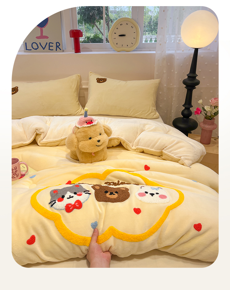 优迈 2025新品牛奶绒毛巾绣冬被 被子被芯 冬被-萌宠奶油